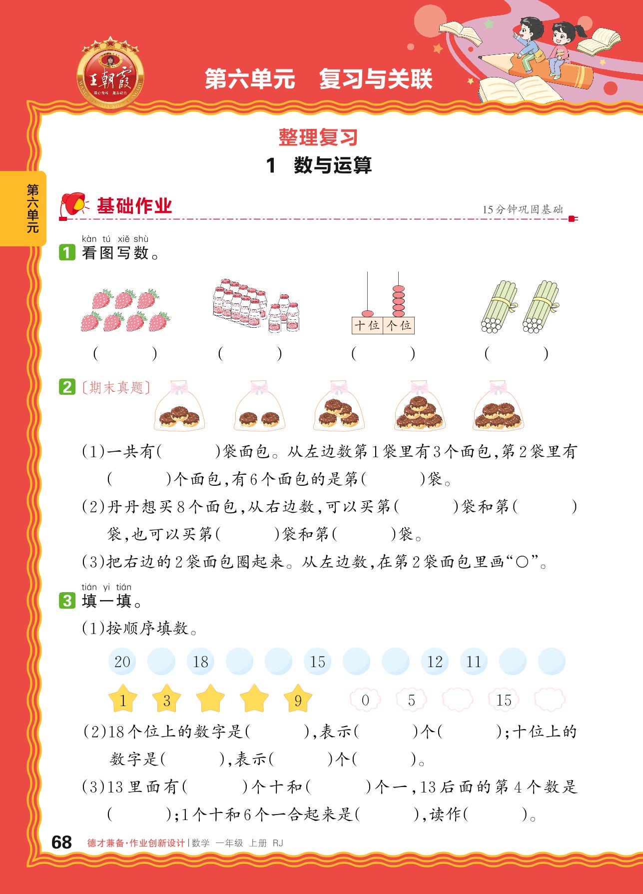 2024秋上册一年级数学人教版 第六单元 复习与关联——1. 数与运算