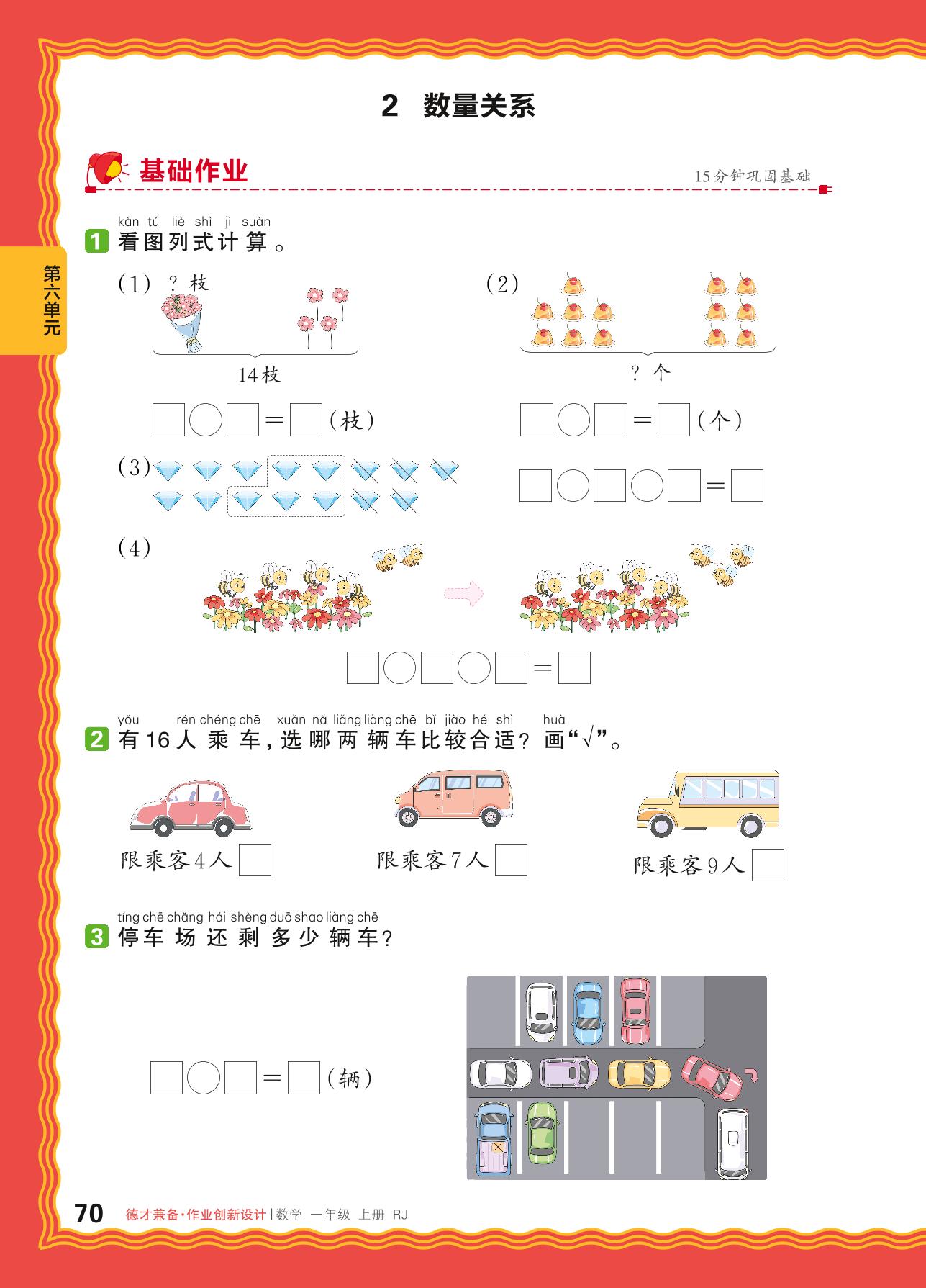 2024秋上册一年级数学人教版 第六单元 复习与关联——2. 数量关系