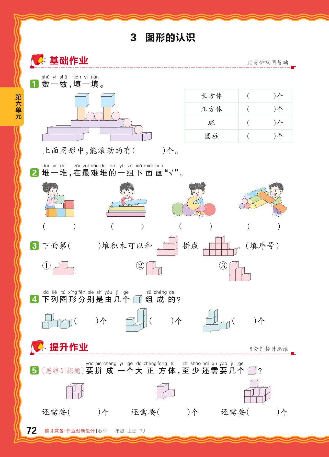 2024秋上册一年级数学人教版 第六单元 复习与关联——3. 图形的认识