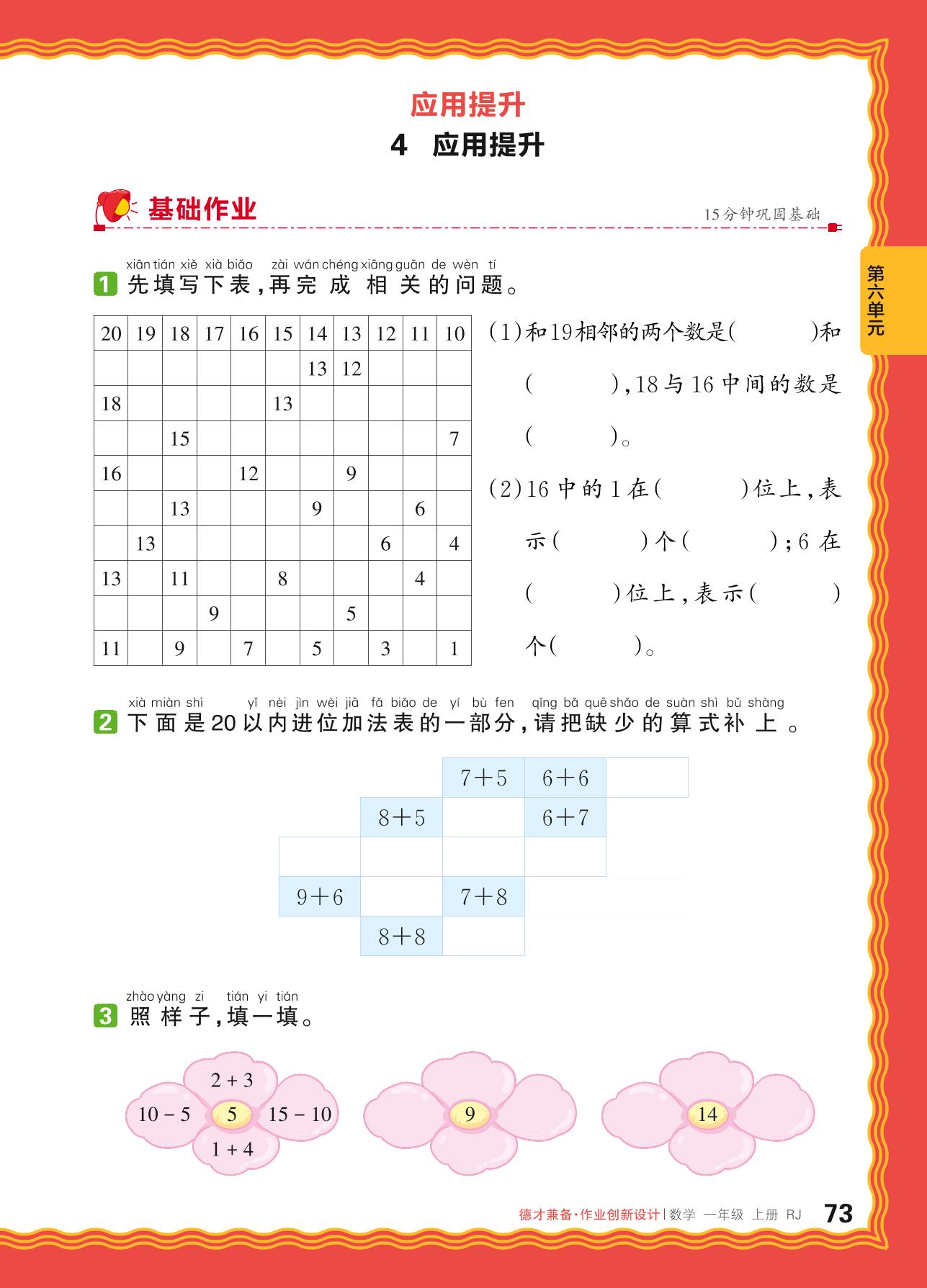 2024秋上册一年级数学人教版 第六单元 复习与关联——4. 应用提升