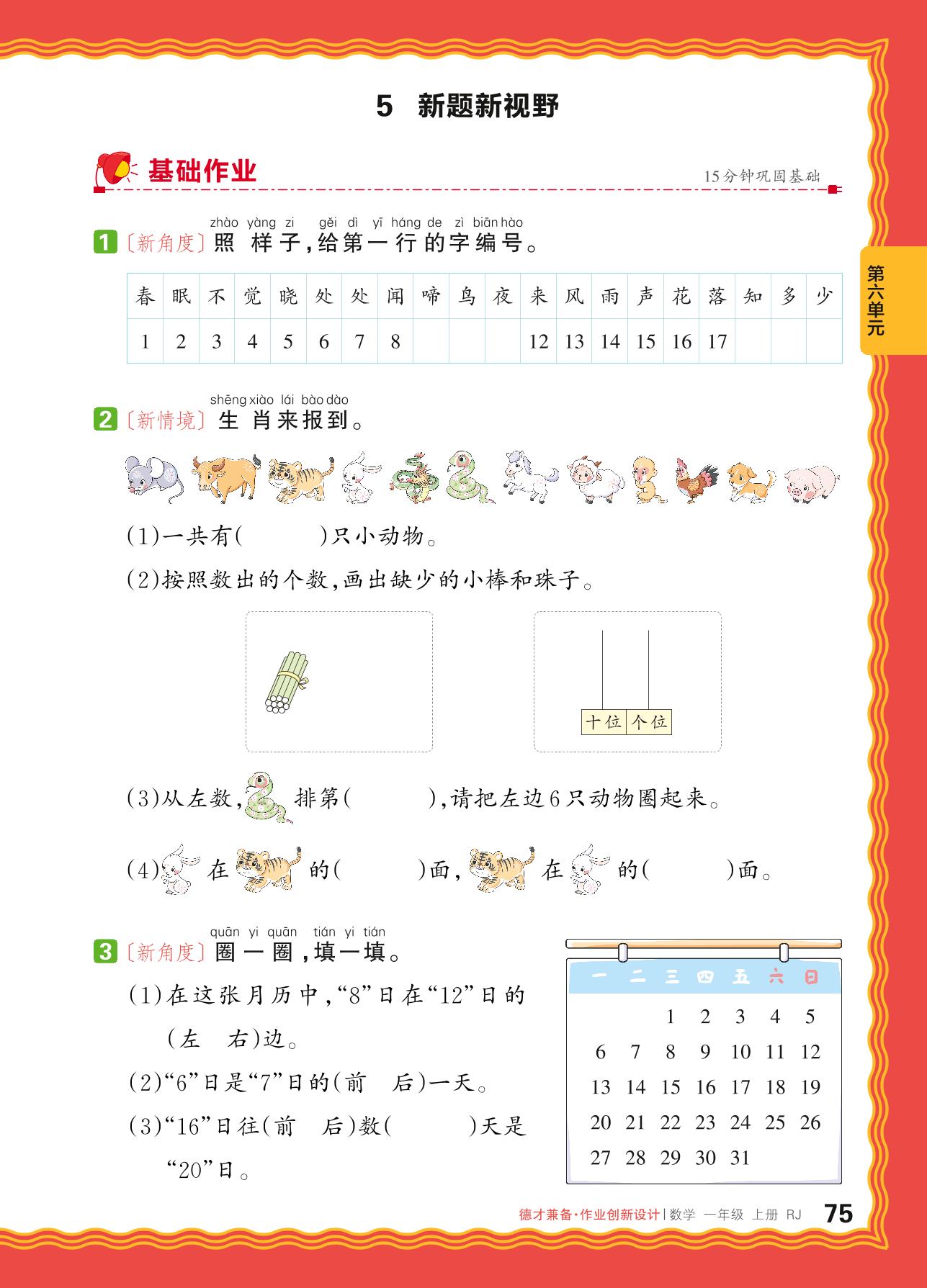 2024秋上册一年级数学人教版 第六单元 复习与关联——5. 新题新视野
