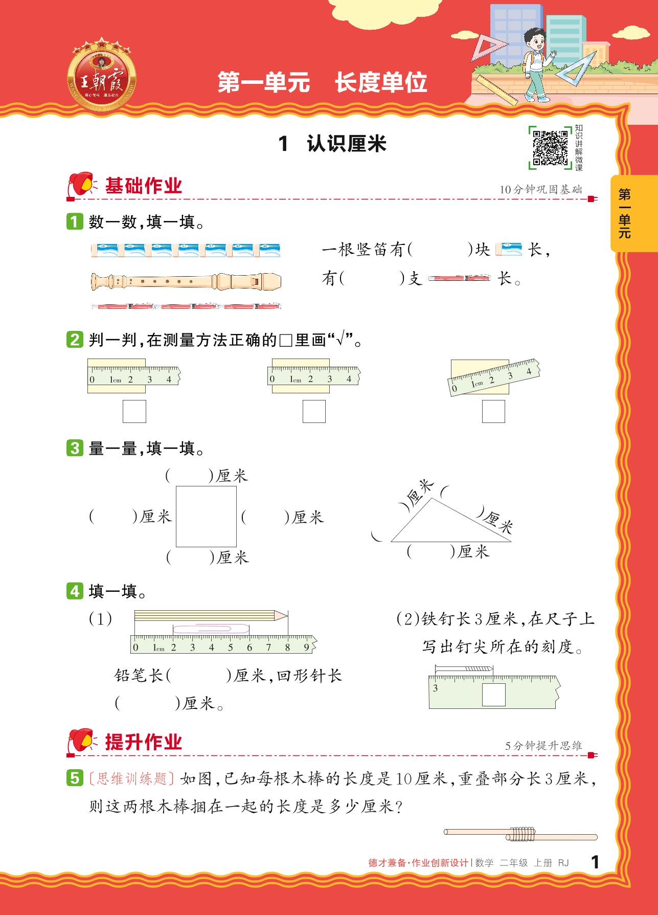 2024秋上册二年级数学人教版 第一单元 长度单位——1. 认识厘米