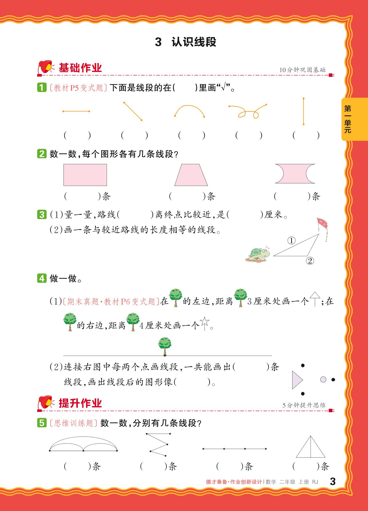 2024秋上册二年级数学人教版 第一单元 长度单位——3. 认识线段