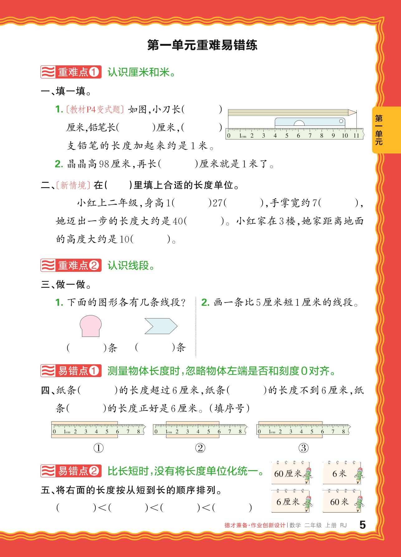 2024秋上册二年级数学人教版 第一单元重难易错练