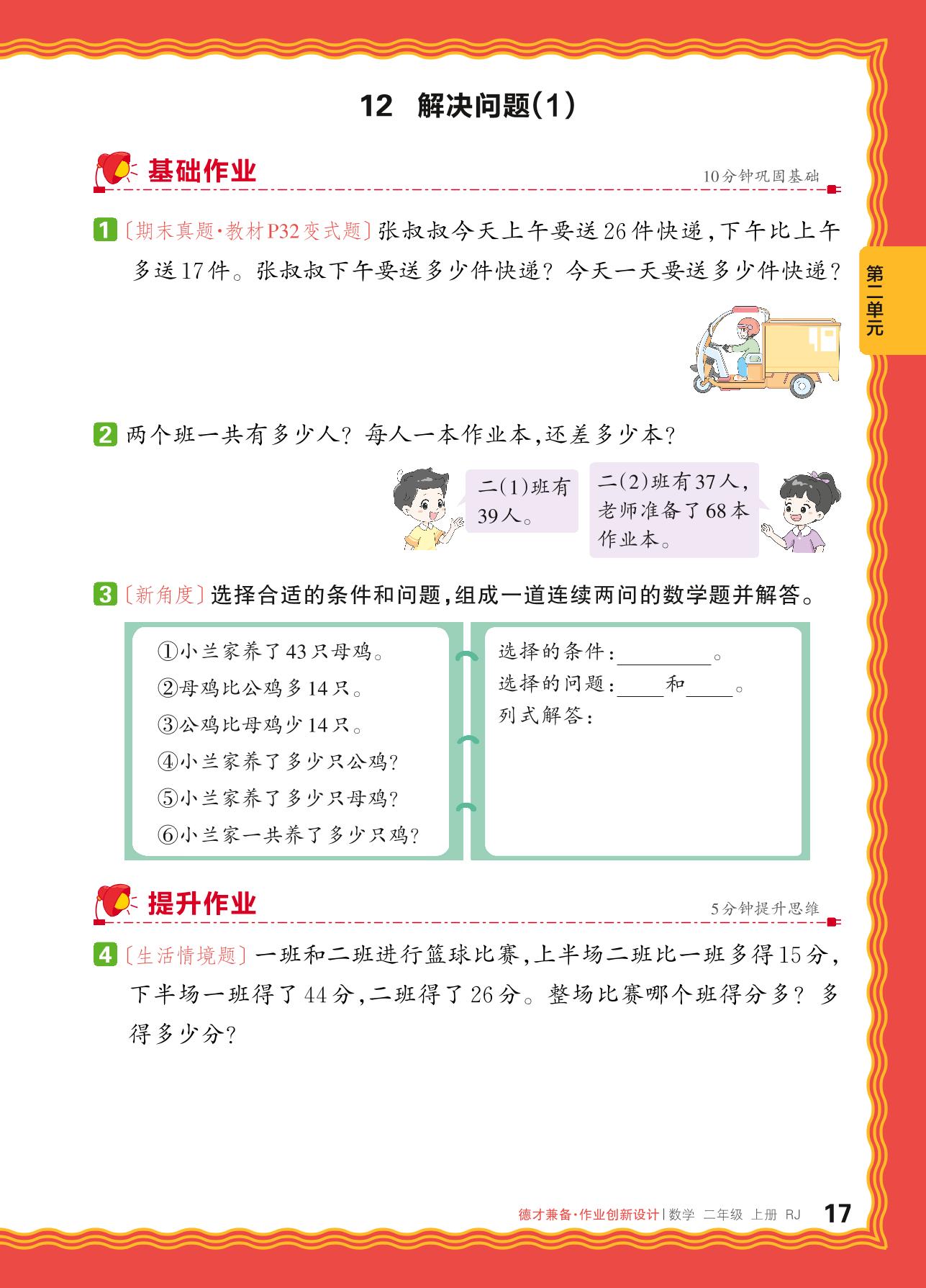 2024秋上册二年级数学人教版 第二单元 100以内的加法和减法(二)——12. 解决问题(1)