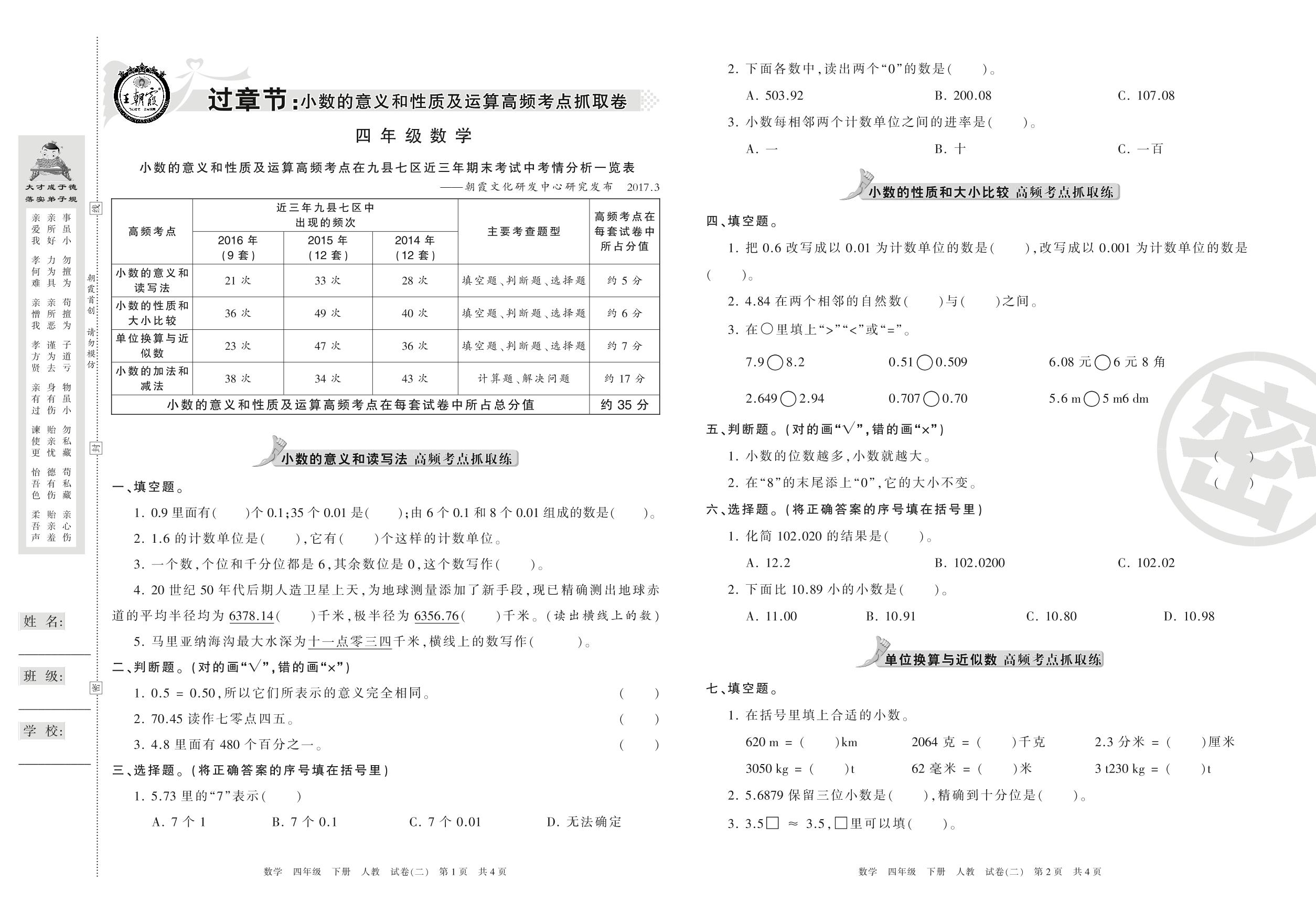 王朝霞期末过章节四年级下册数学(人教版)_R210804151714【2】