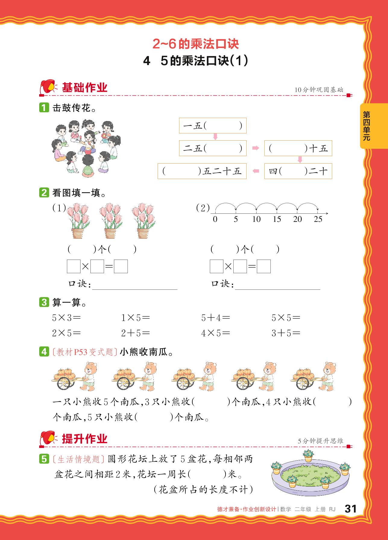 2024秋上册二年级数学人教版 第四单元 表内乘法(一)——4. 5的乘法口诀(1)