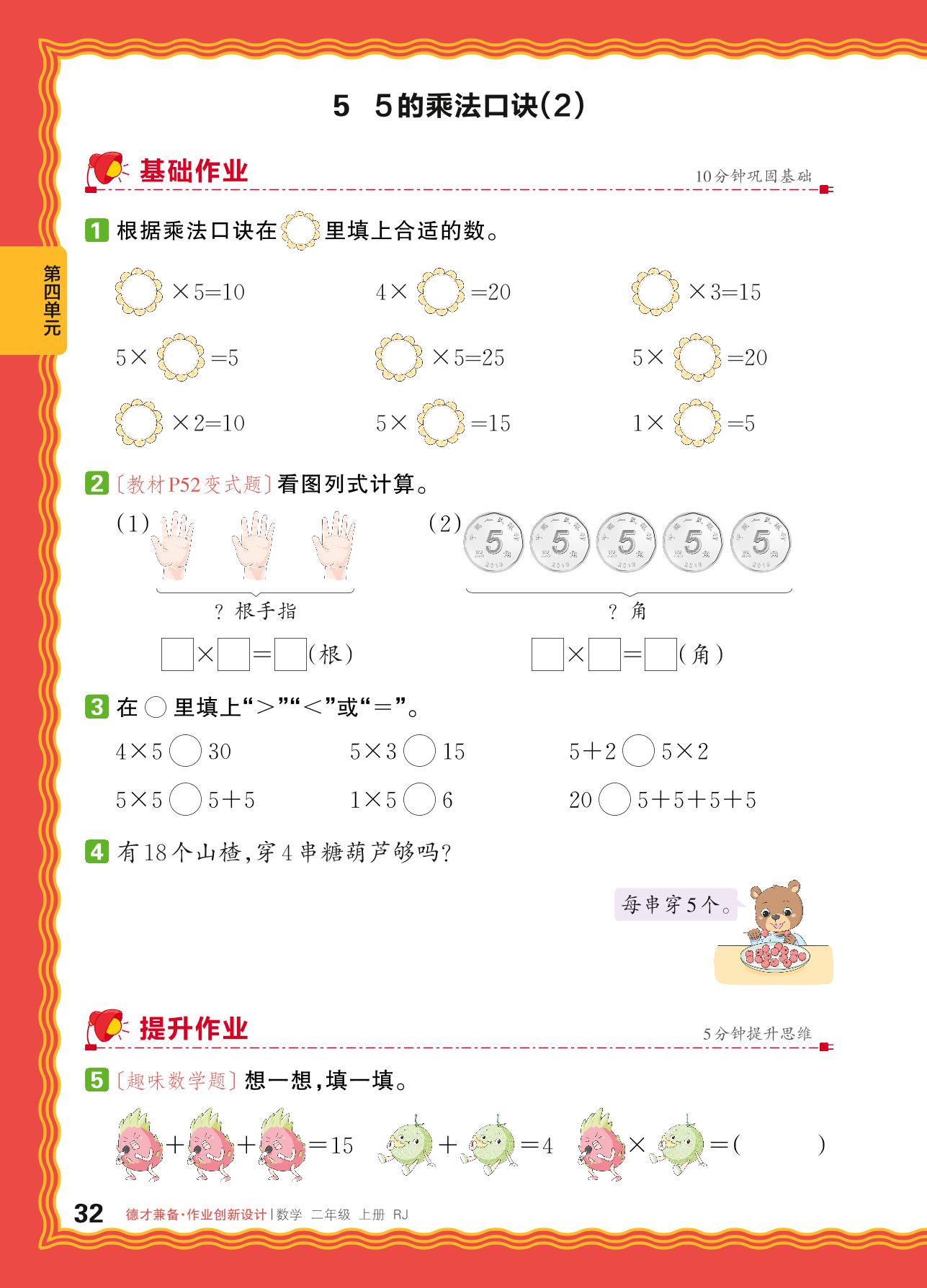2024秋上册二年级数学人教版 第四单元 表内乘法(一)——5. 5的乘法口诀(2)