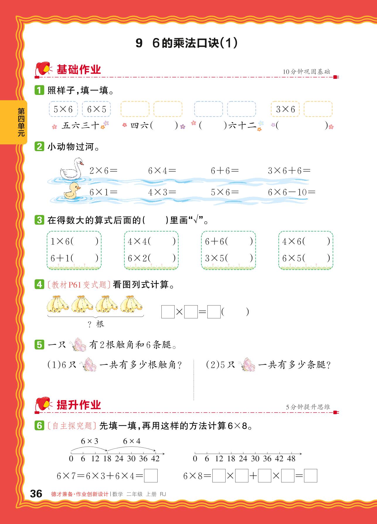 2024秋上册二年级数学人教版 第四单元 表内乘法(一)——9. 6的乘法口诀(1)