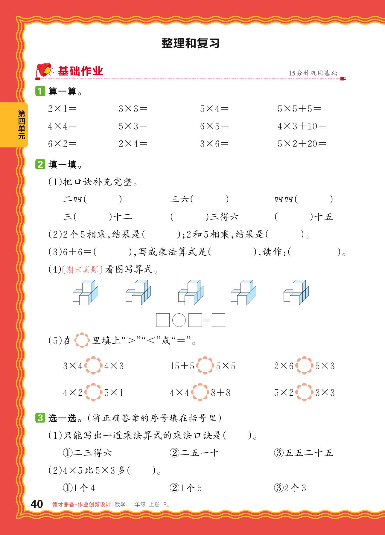 2024秋上册二年级数学人教版 第四单元 表内乘法(一)——整理和复习