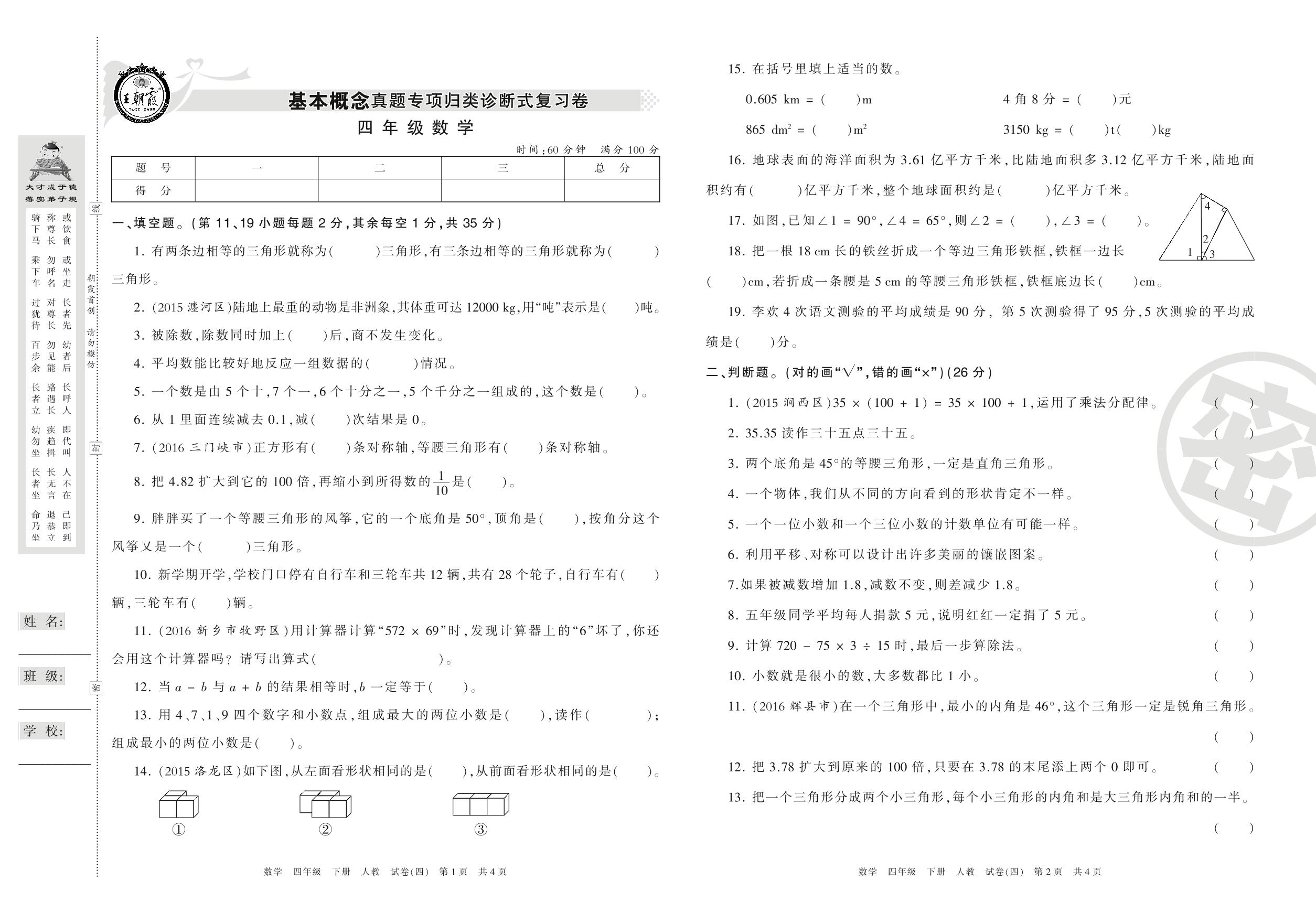 王朝霞期末专项卷四年级下册数学(人教版)_R210804151725【4】