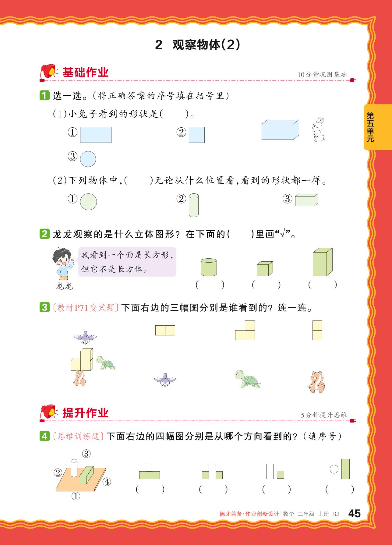 2024秋上册二年级数学人教版 第五单元 观察物体(一)——2. 观察物体(2)