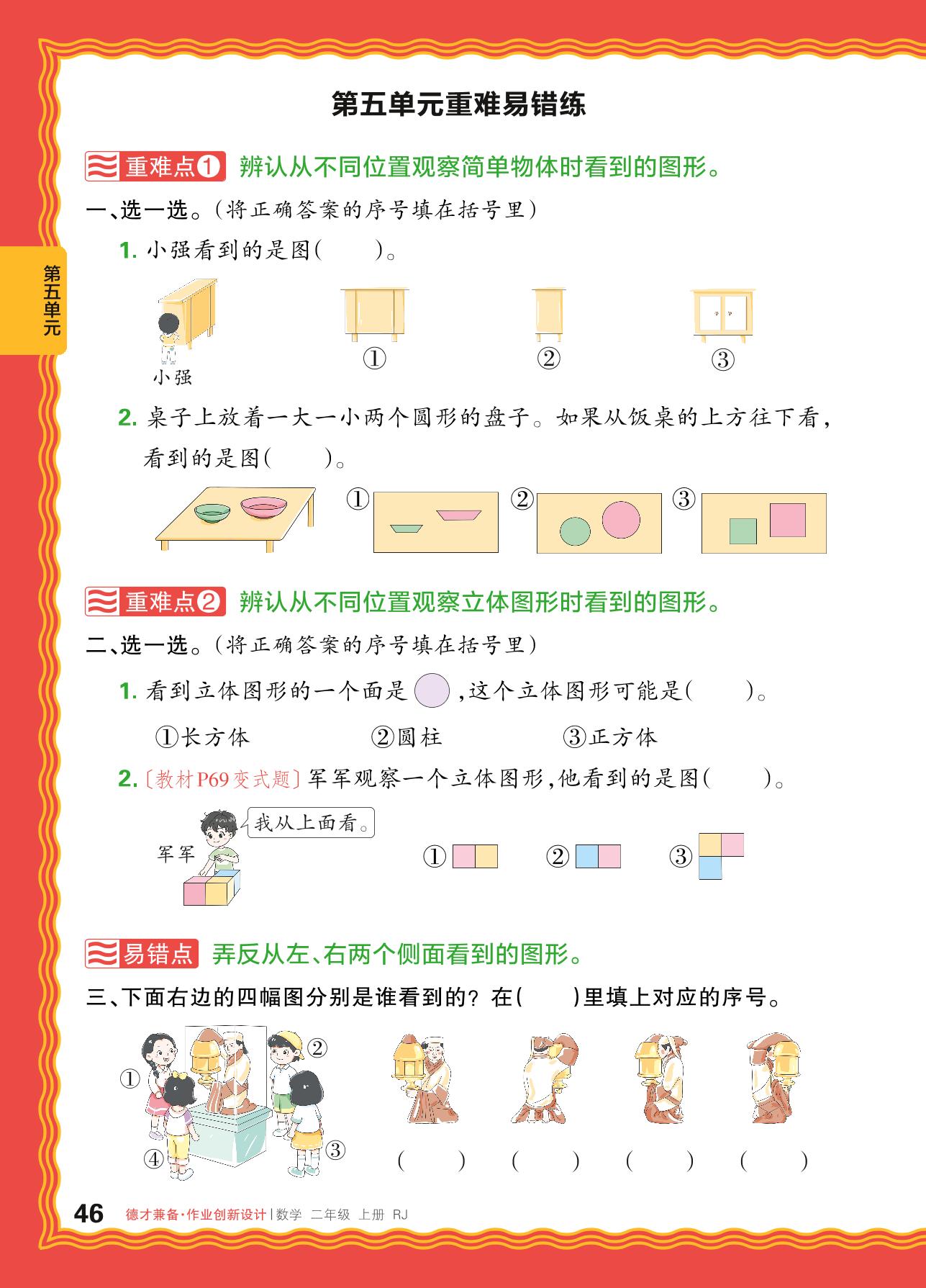 2024秋上册二年级数学人教版 第五单元重难易错练