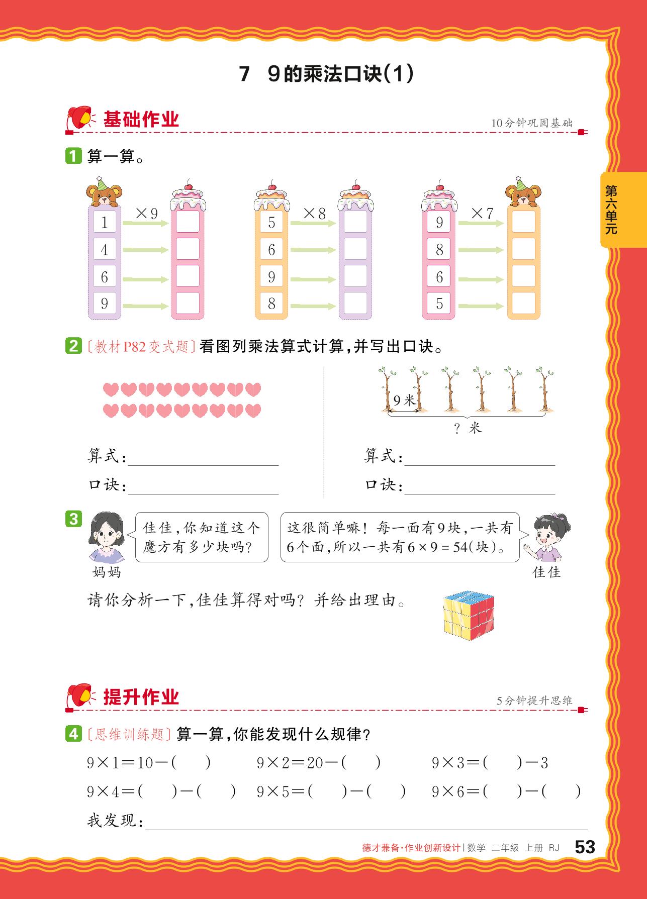 2024秋上册二年级数学人教版 第六单元 表内乘法(二)——7. 9的乘法口诀(1)