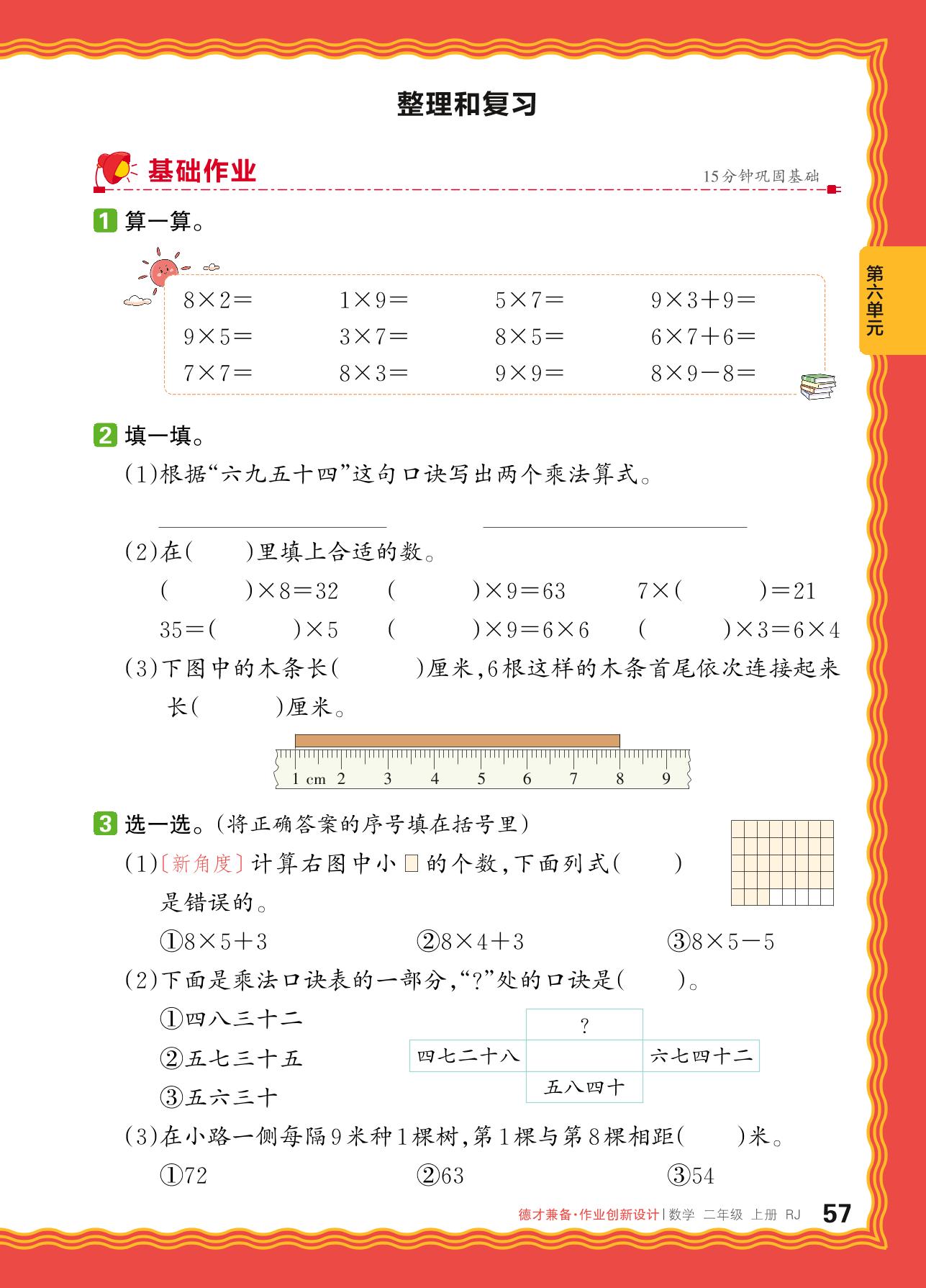 2024秋上册二年级数学人教版 第六单元 表内乘法(二)——整理和复习