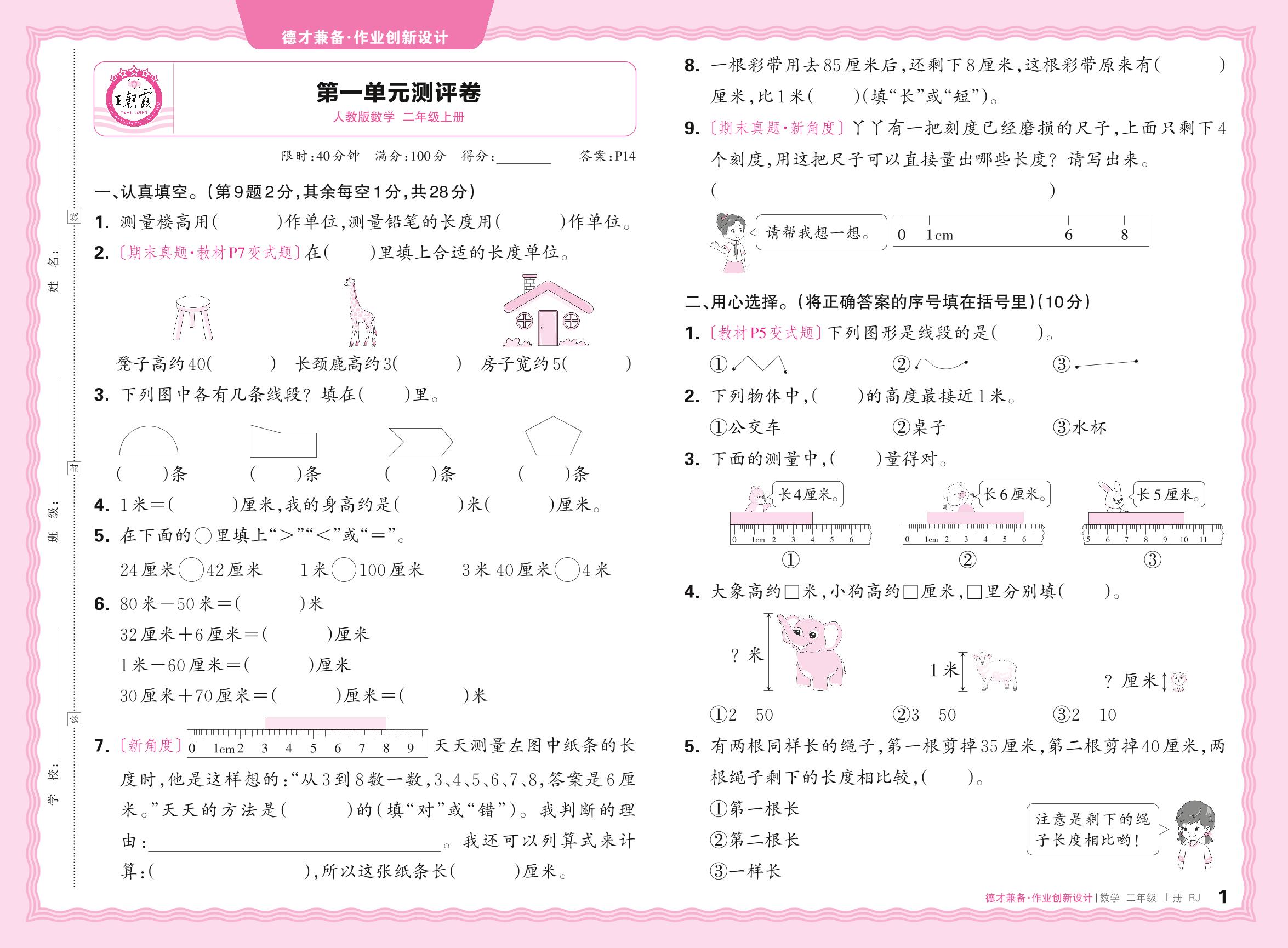 二年级数学人教版上册单元卷