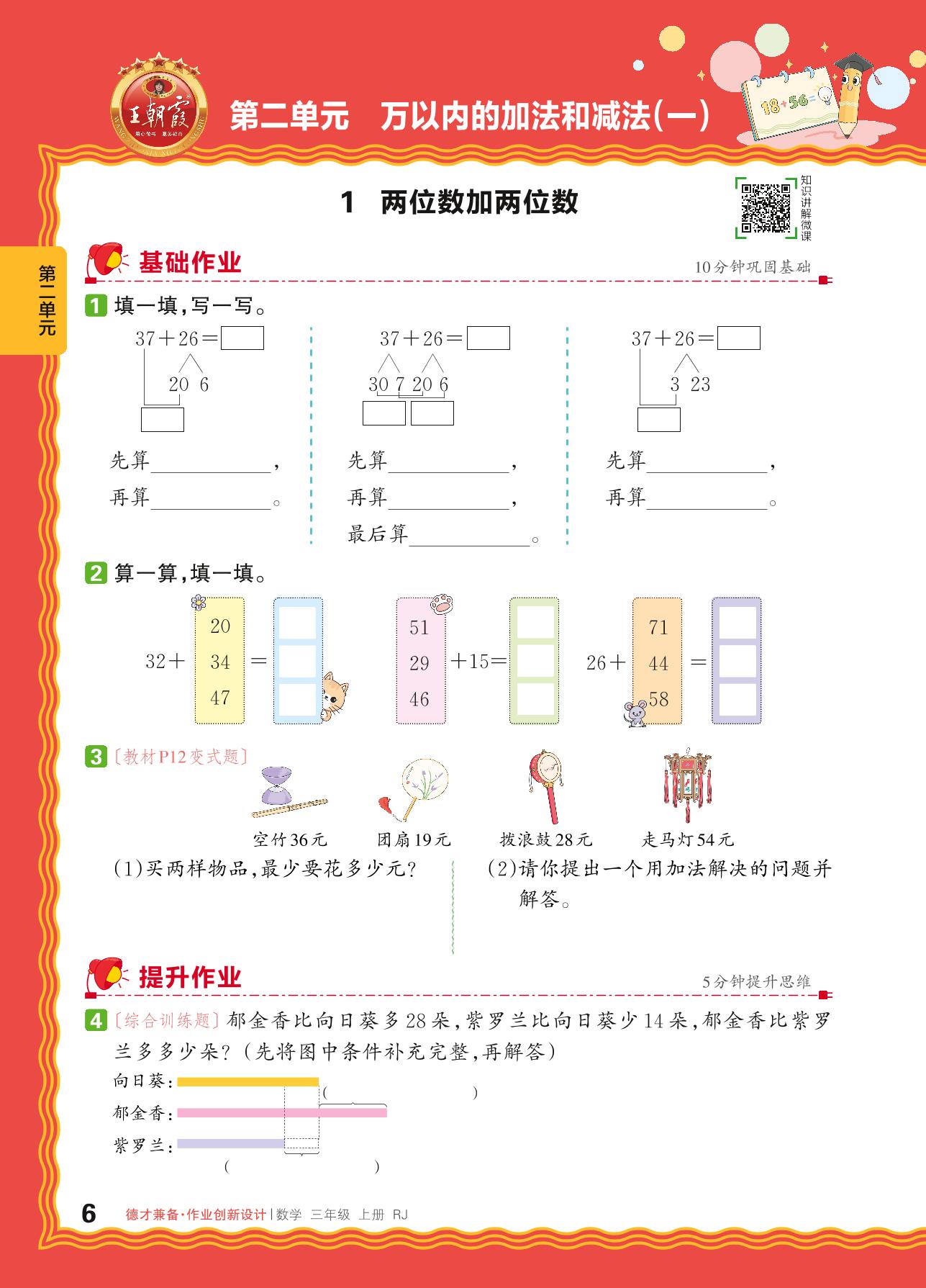 2024秋上册三年级数学人教版 第二单元 万以内的加法和减法(一)——1. 两位数加两位数