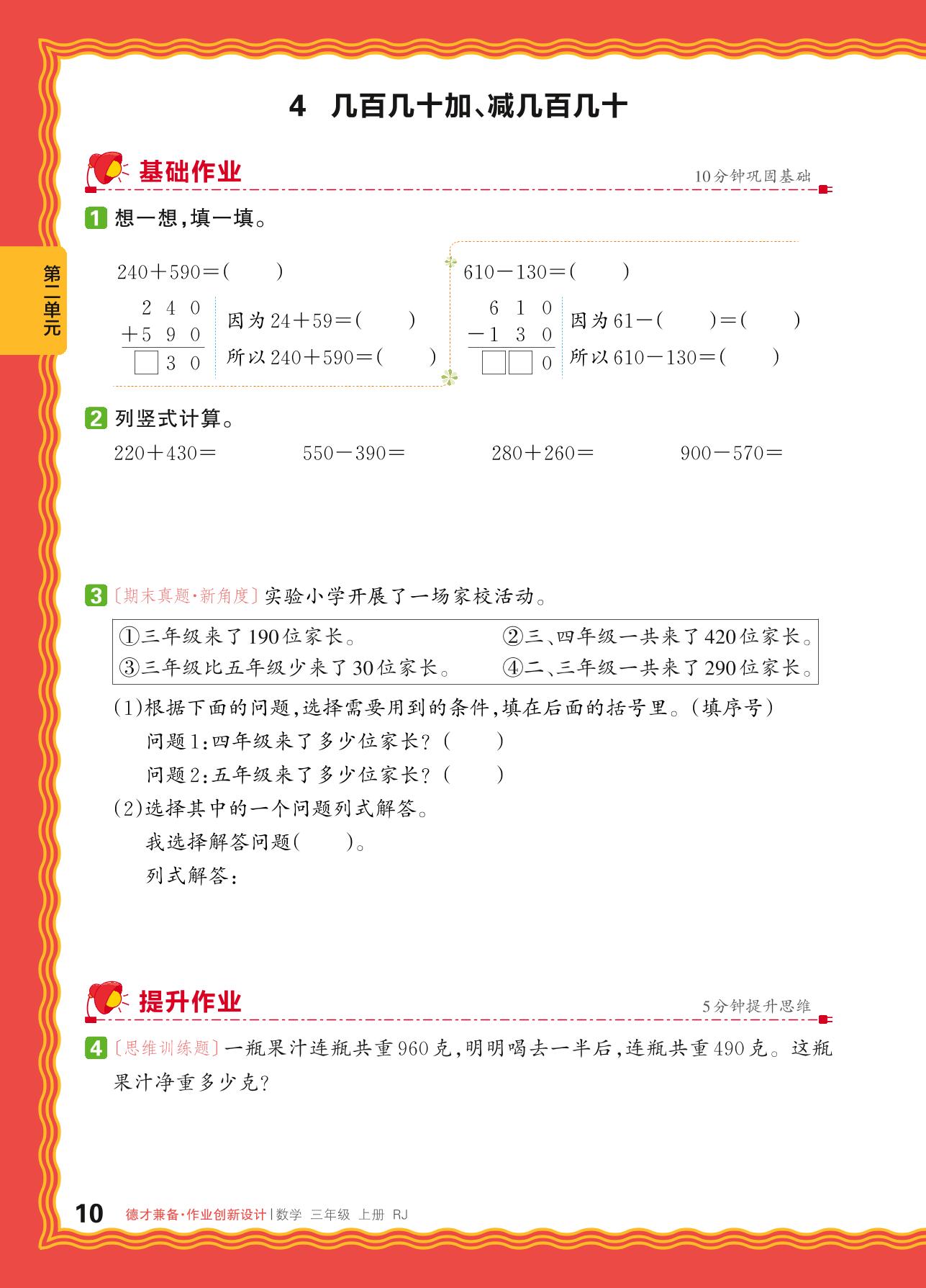 2024秋上册三年级数学人教版 第二单元 万以内的加法和减法(一)——4. 几百几十加、减几百几十