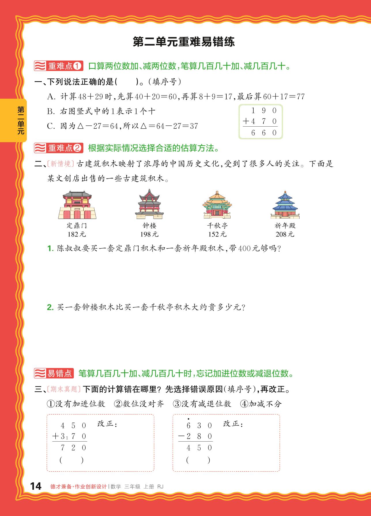 2024秋上册三年级数学人教版 第二单元重难易错练