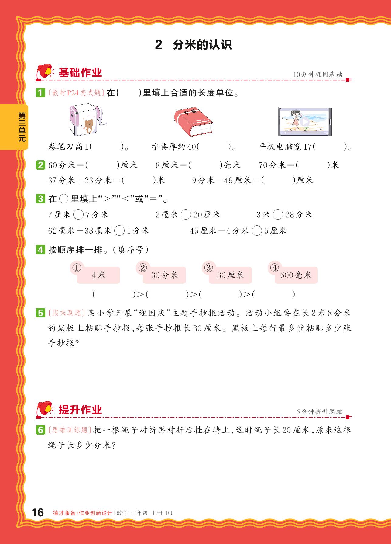 2024秋上册三年级数学人教版 第三单元 测量——2. 分米的认识