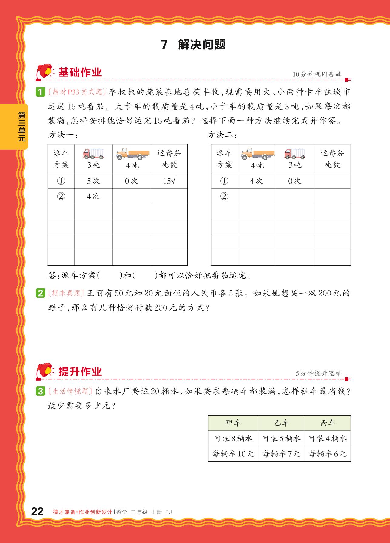 三年级数学人教版上册课时作业