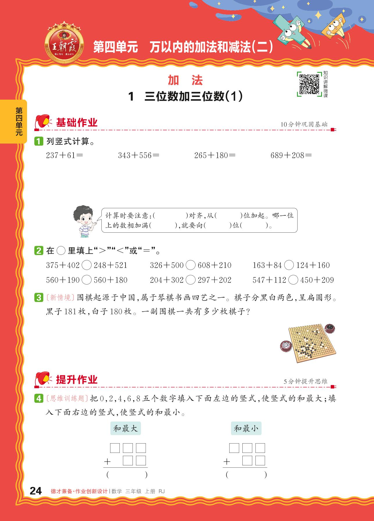 2024秋上册三年级数学人教版 第四单元 万以内的加法和减法(二)——1. 三位数加三位数(1)
