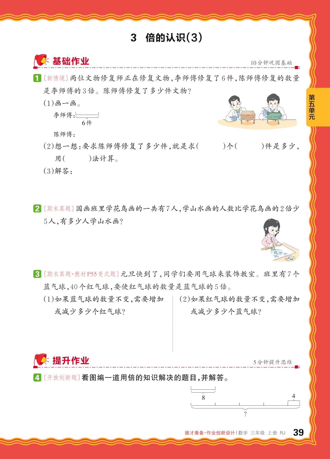 2024秋上册三年级数学人教版 第五单元 倍的认识——3. 倍的认识(3)