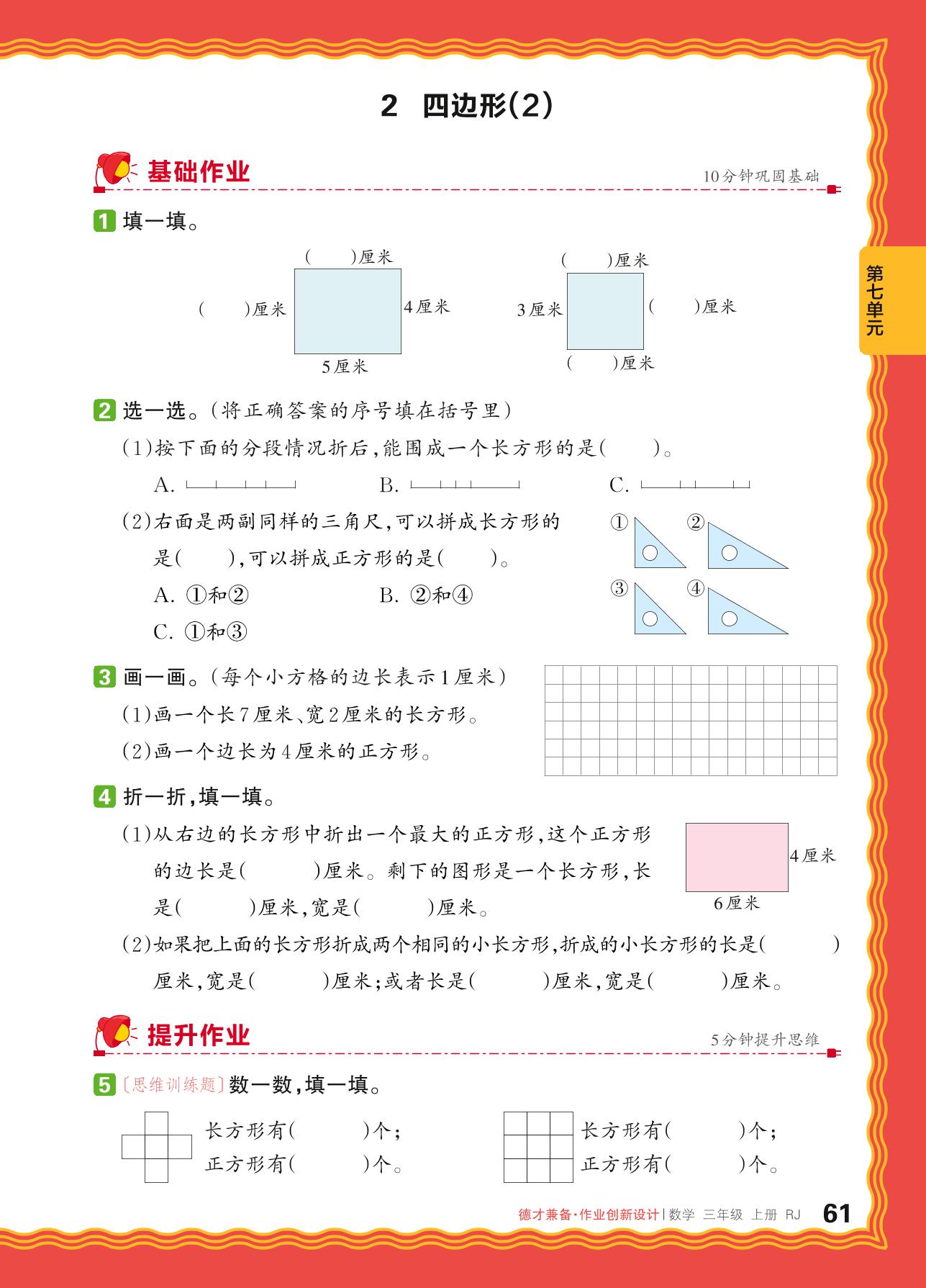 2024秋上册三年级数学人教版 第七单元 长方形和正方形——2. 四边形(2)