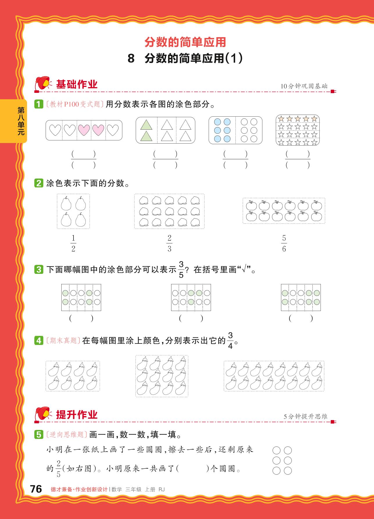 2024秋上册三年级数学人教版 第八单元 分数的初步认识——8. 分数的简单应用(1)
