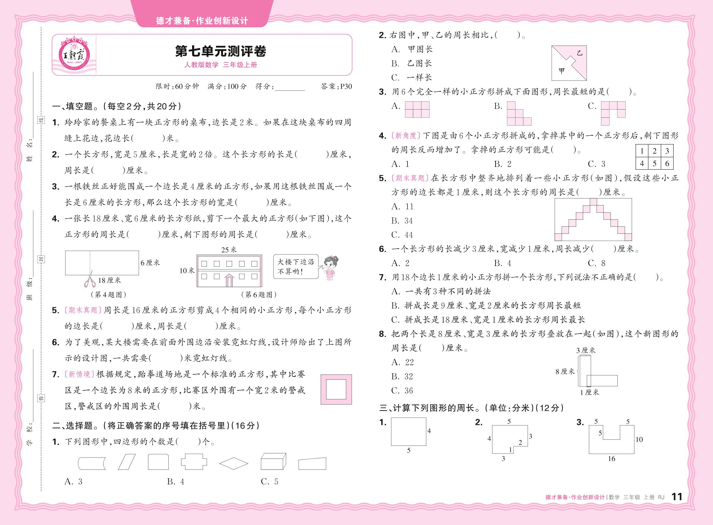 2024秋上册三年级数学人教版 第七单元测评卷