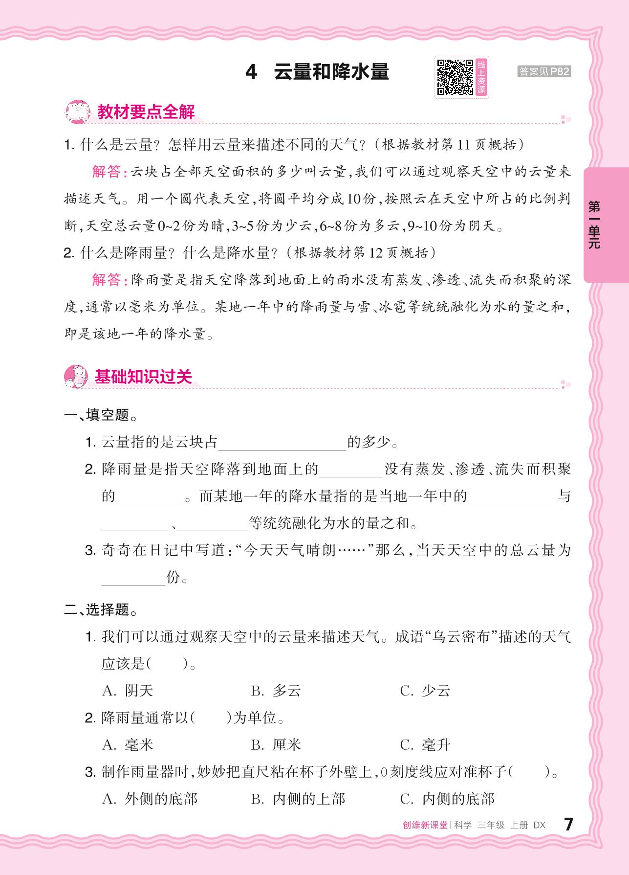 2024秋上册三年级科学大象版 第一单元 小小气象员——4. 云量和降水量