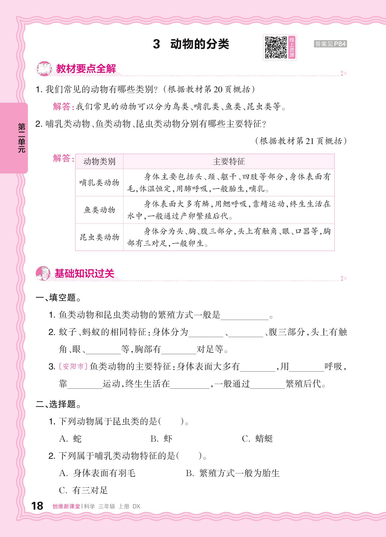 2024秋上册三年级科学大象版 第二单元 动物的特征——3. 动物的分类