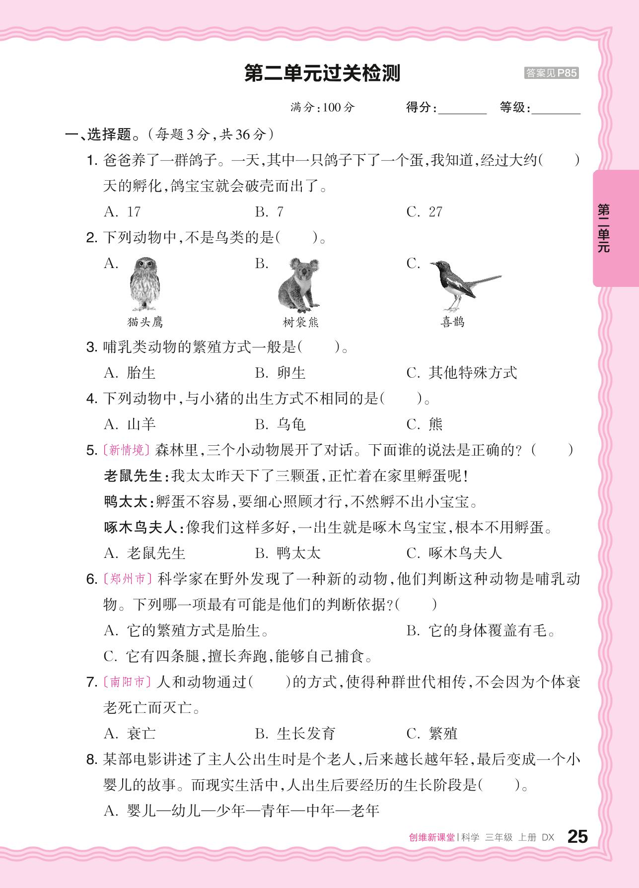 2024秋上册三年级科学大象版 第二单元过关检测_R240816095654141