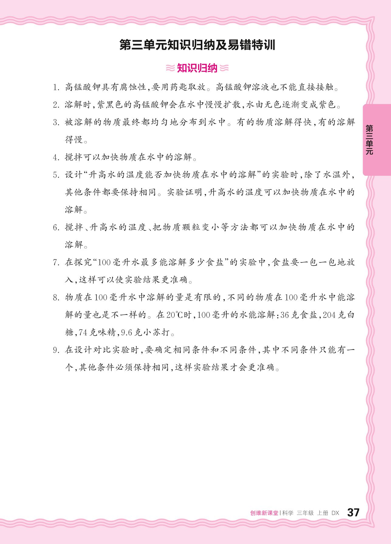 2024秋上册三年级科学大象版 第三单元知识归纳及易错特训_R240816095657199