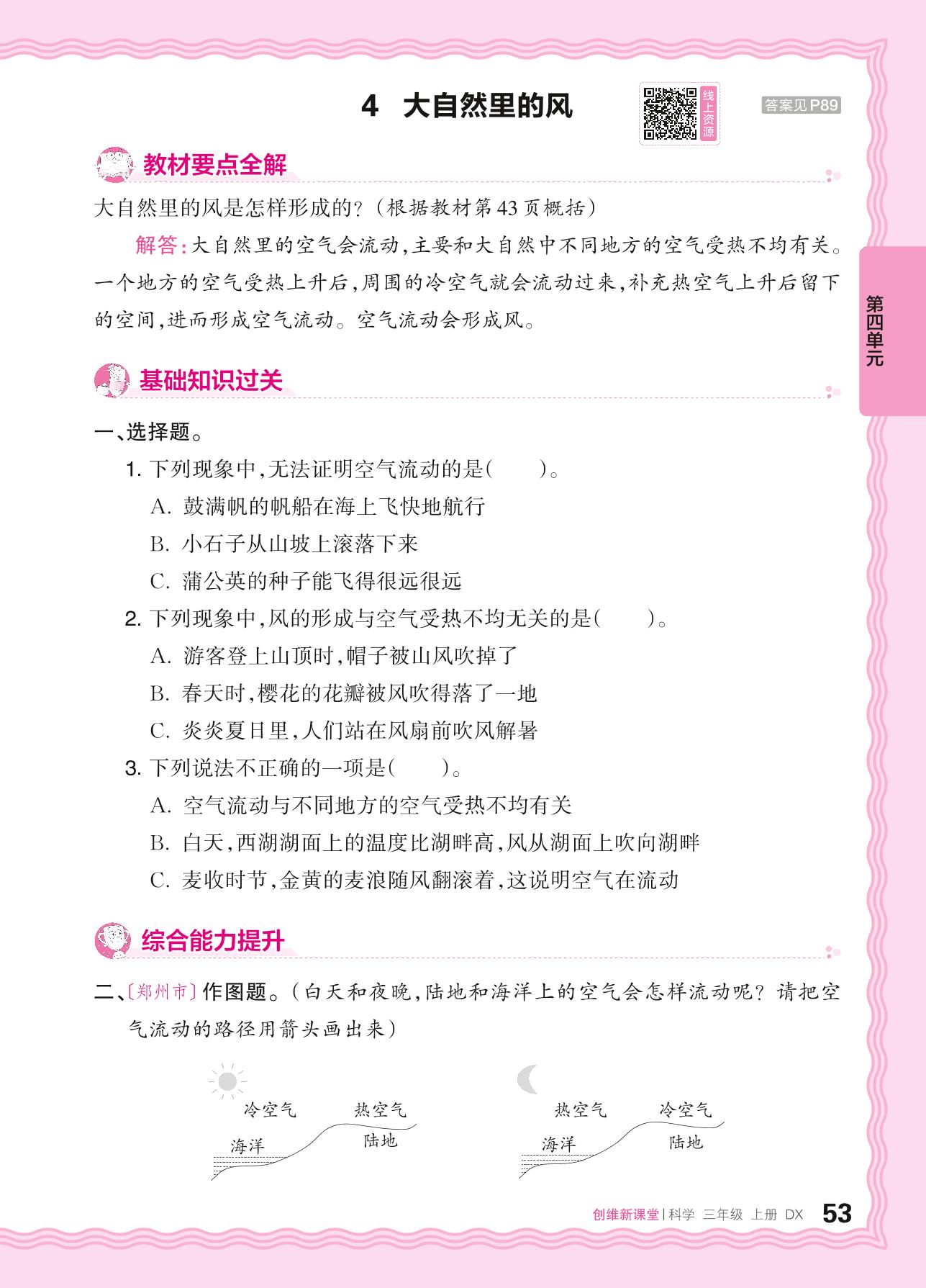 2024秋上册三年级科学大象版 第四单元 流动的空气——4. 大自然里的风
