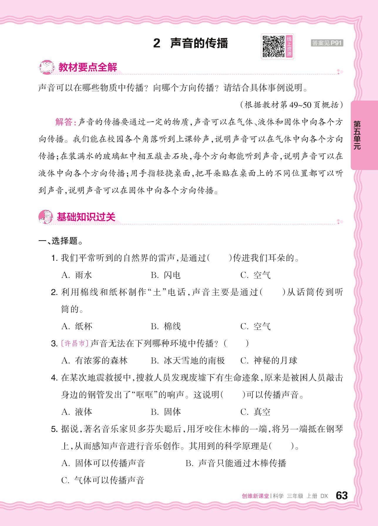2024秋上册三年级科学大象版 第五单元 奇妙的声音——2. 声音的传播