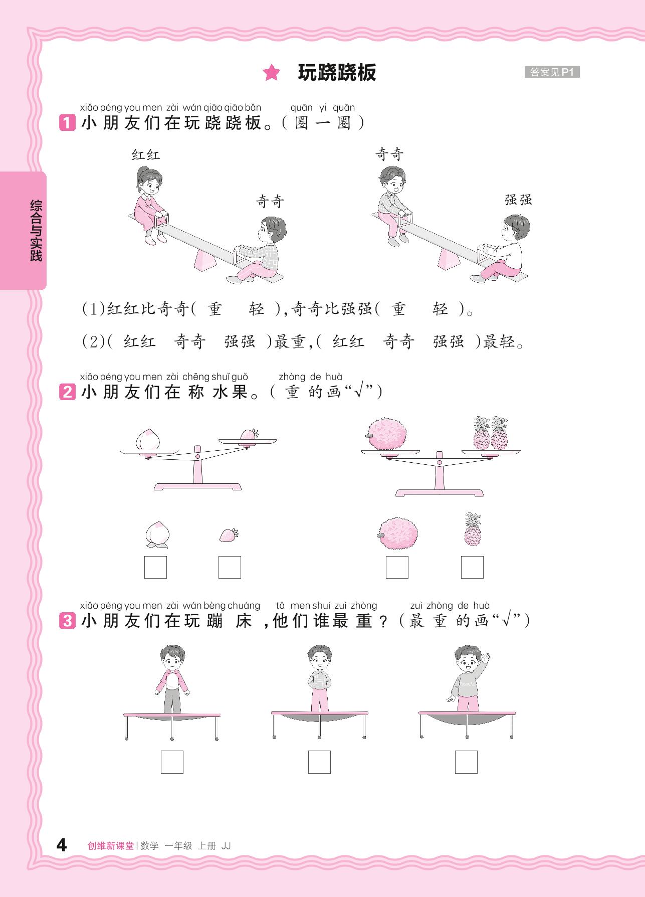 2024秋上册一年级数学冀教版 我上学了——玩跷跷板