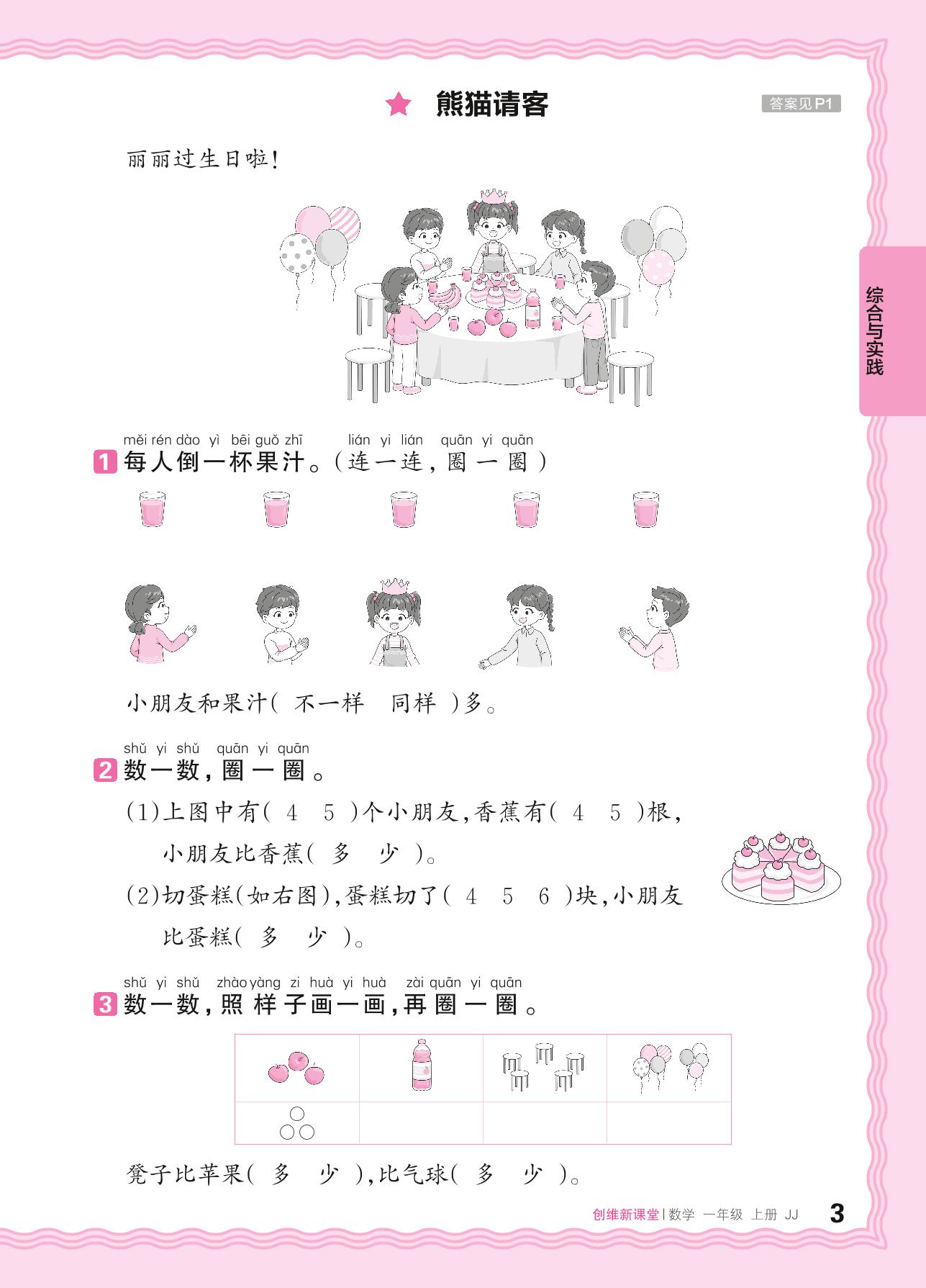 2024秋上册一年级数学冀教版 我上学了——熊猫请客
