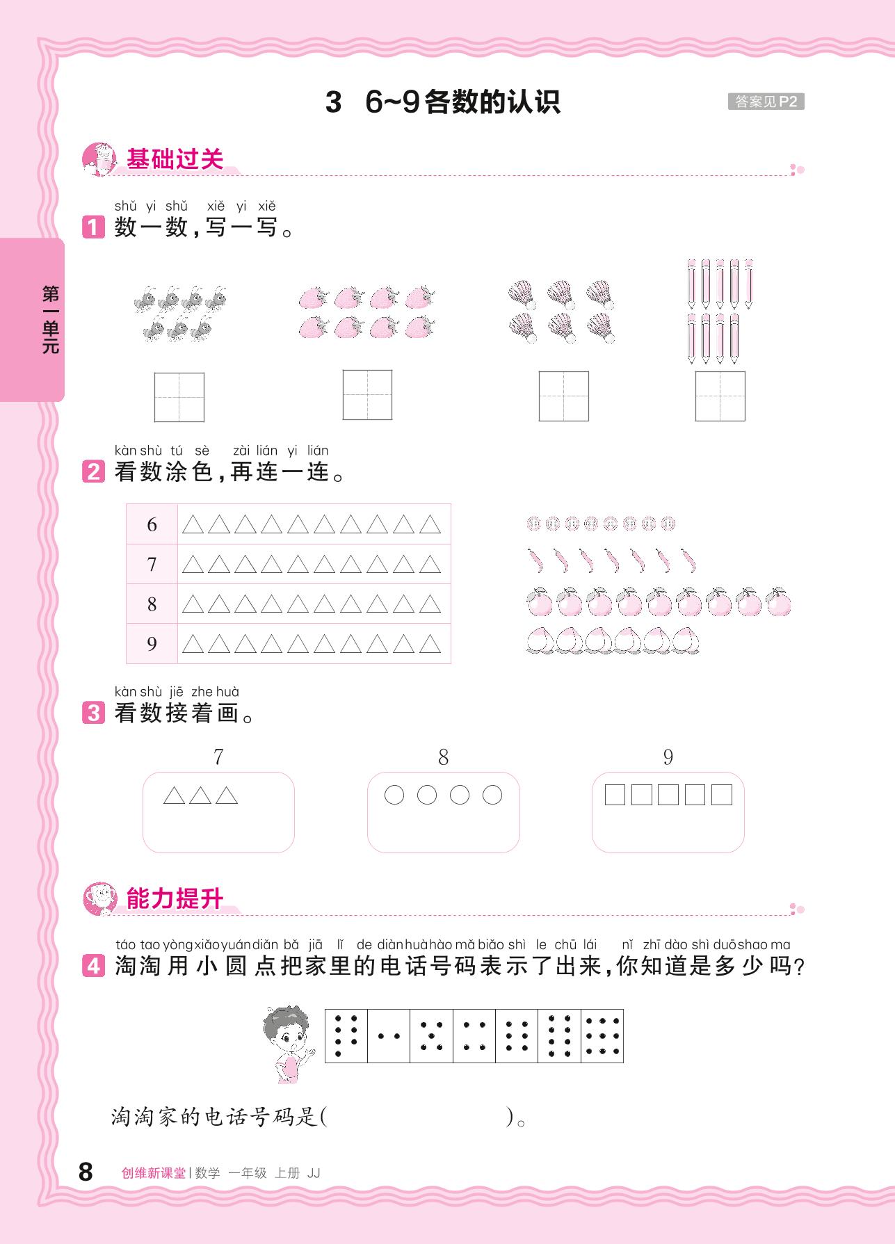 2024秋上册一年级数学冀教版 第一单元 熟悉的数与加减法——3. 6~9各数的认识