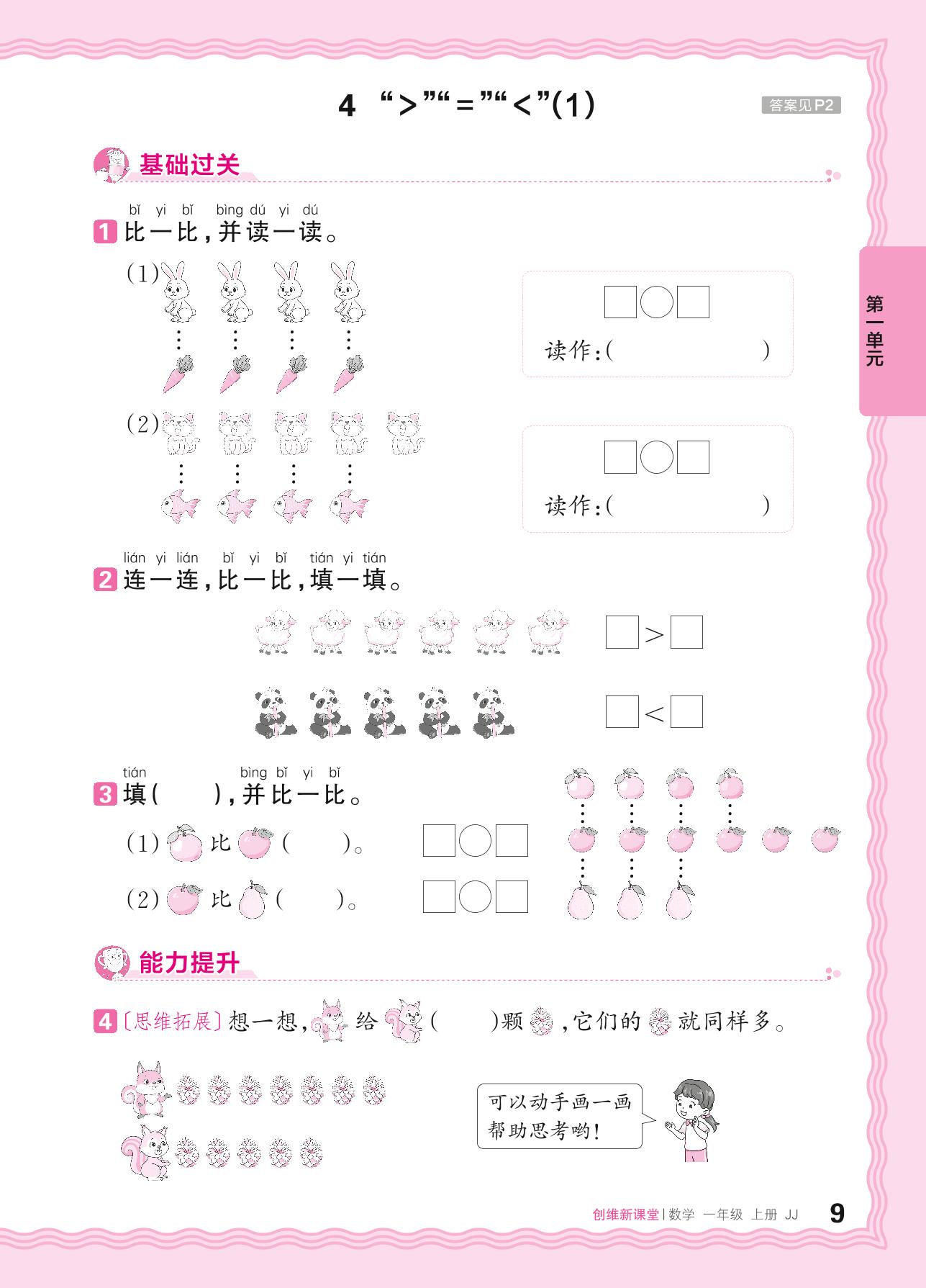 2024秋上册一年级数学冀教版 第一单元 熟悉的数与加减法——4. “>”“=”“<”(1)