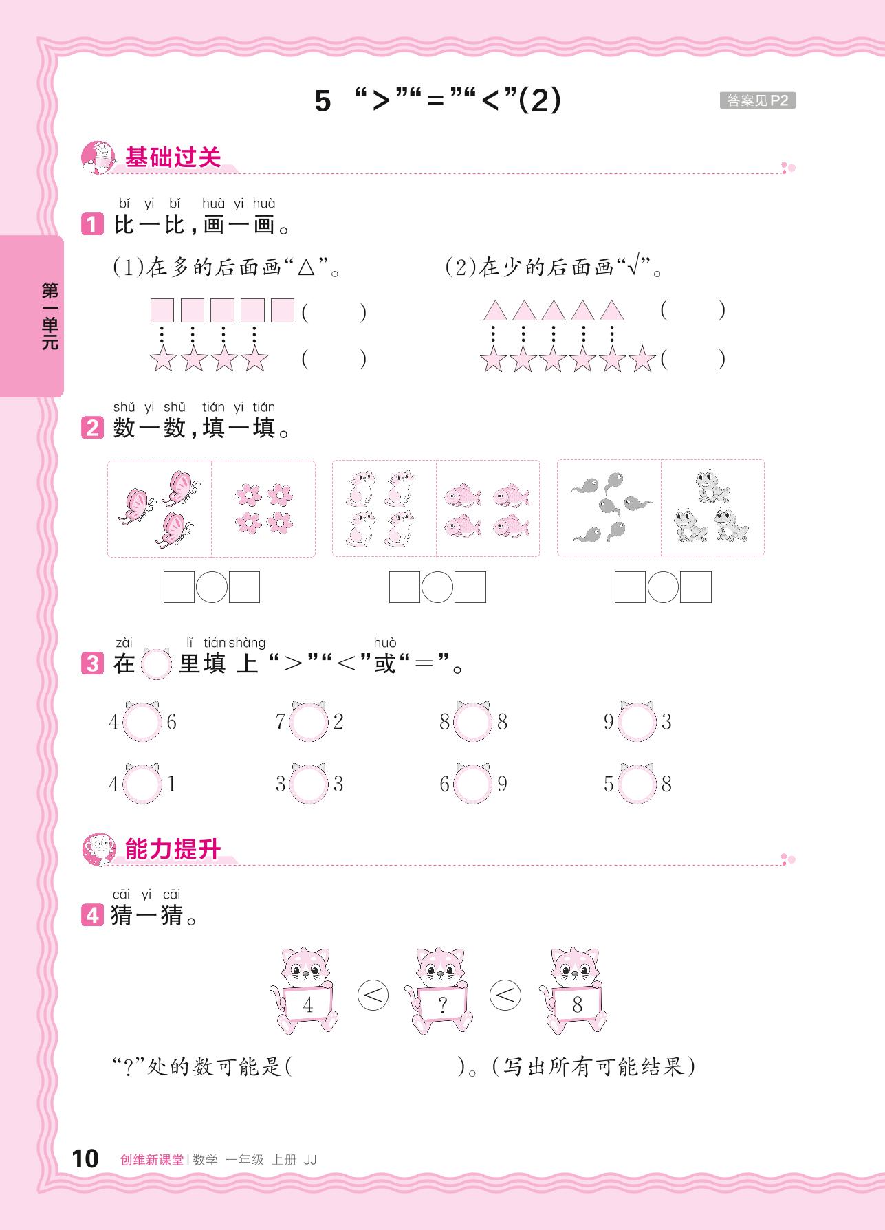 2024秋上册一年级数学冀教版 第一单元 熟悉的数与加减法——5. “>”“=”“<”(2)