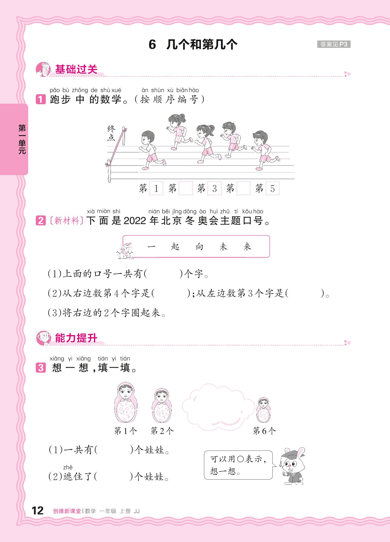 2024秋上册一年级数学冀教版 第一单元 熟悉的数与加减法——6. 几个和第几个