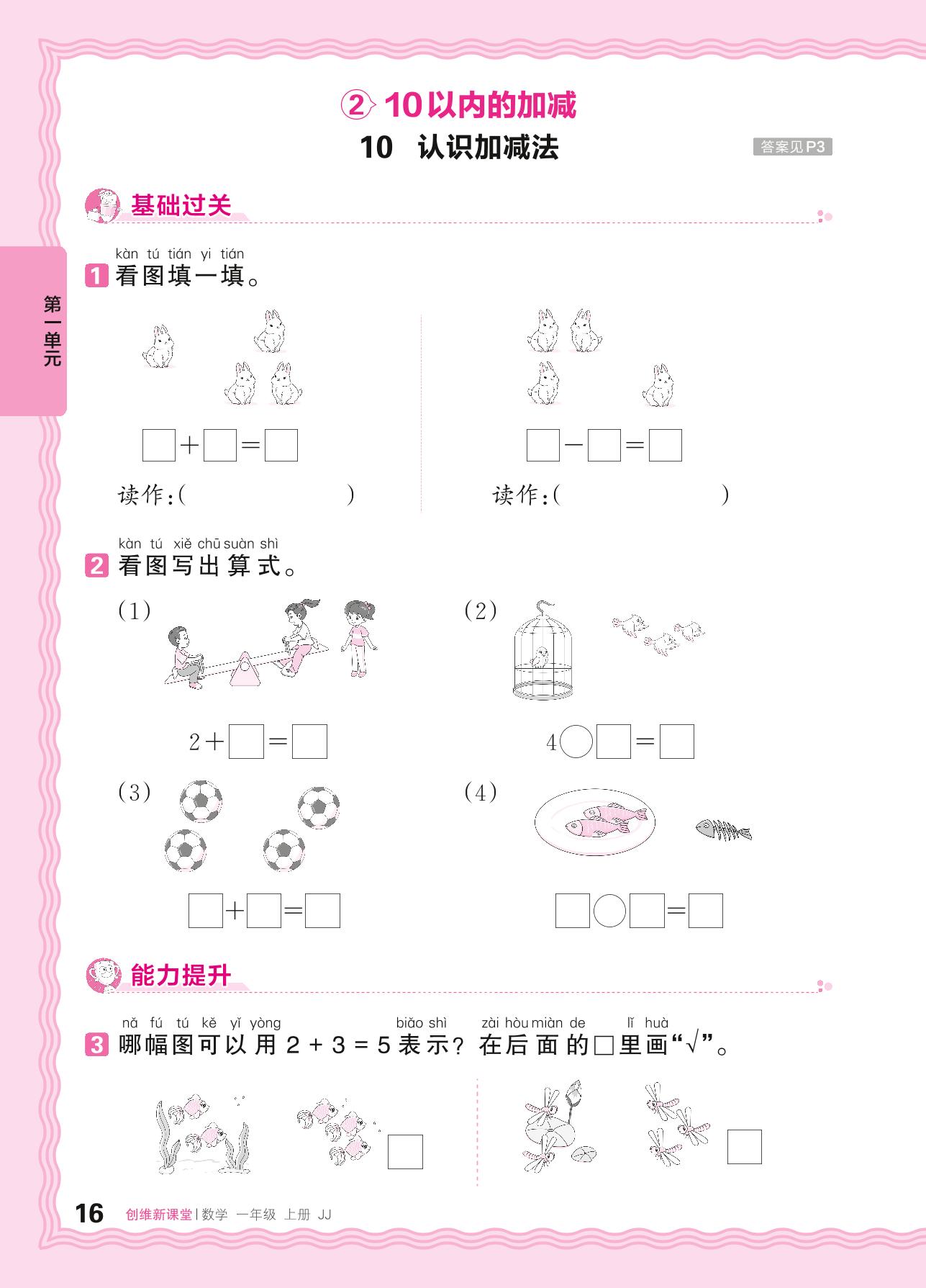 2024秋上册一年级数学冀教版 第一单元 熟悉的数与加减法——10. 认识加减法