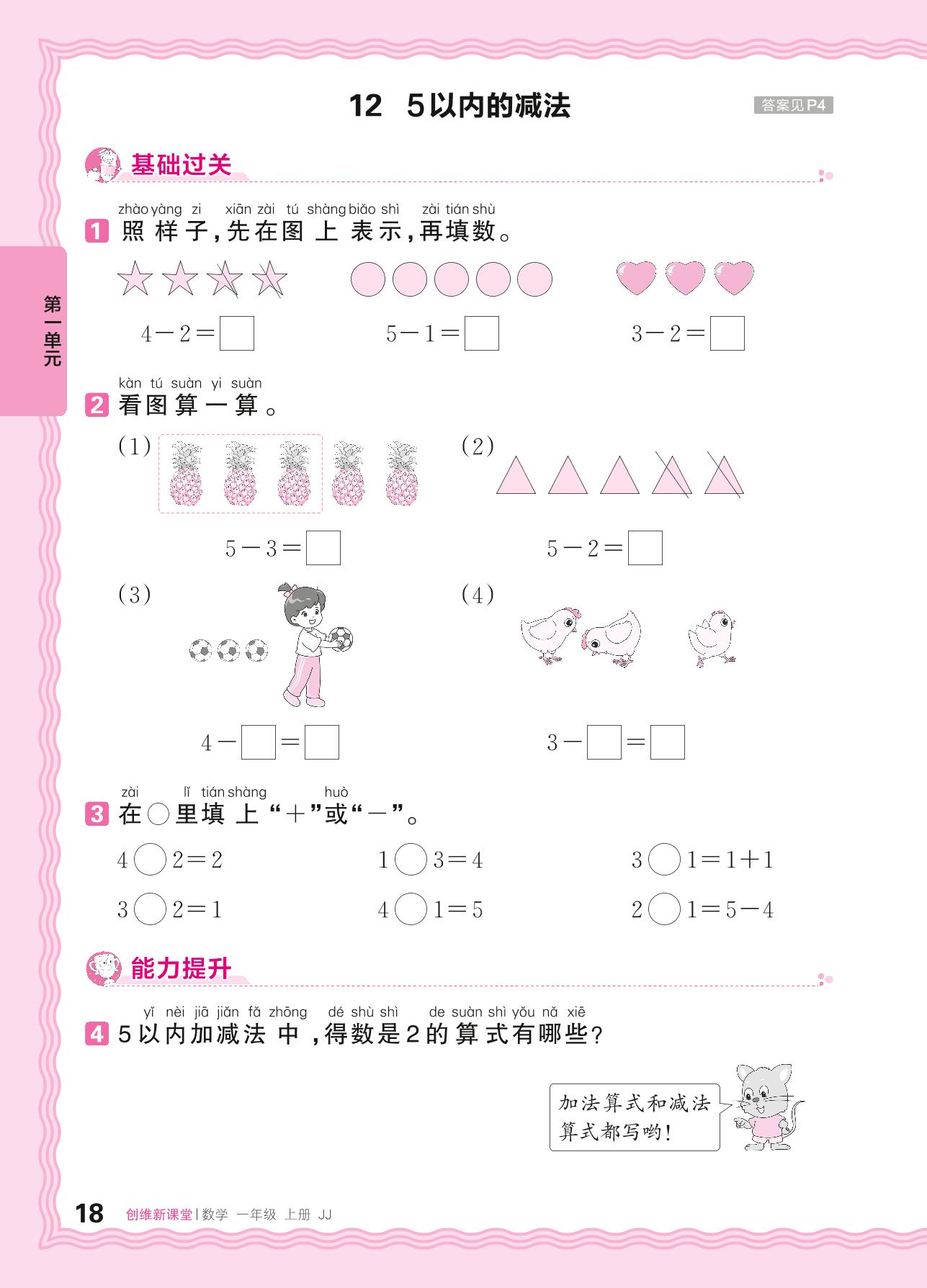 2024秋上册一年级数学冀教版 第一单元 熟悉的数与加减法——12. 5以内的减法