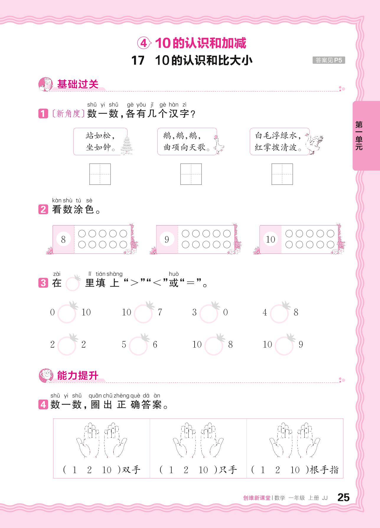 2024秋上册一年级数学冀教版 第一单元 熟悉的数与加减法——17. 10的认识和比大小