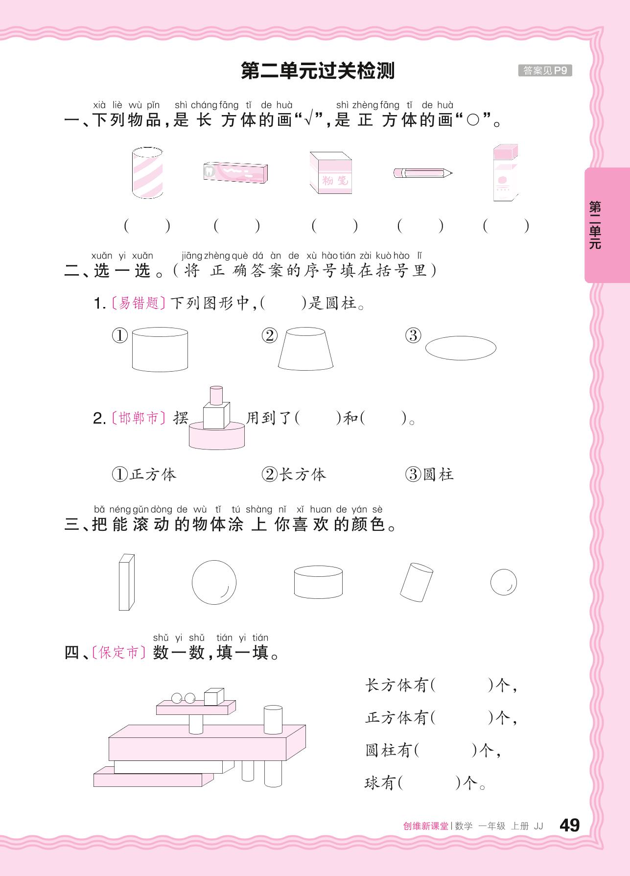 2024秋上册一年级数学冀教版 第二单元过关检测