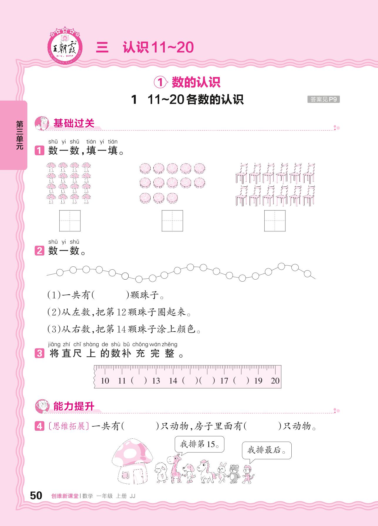 2024秋上册一年级数学冀教版 第三单元 认识11~20——1. 11~20各数的认识