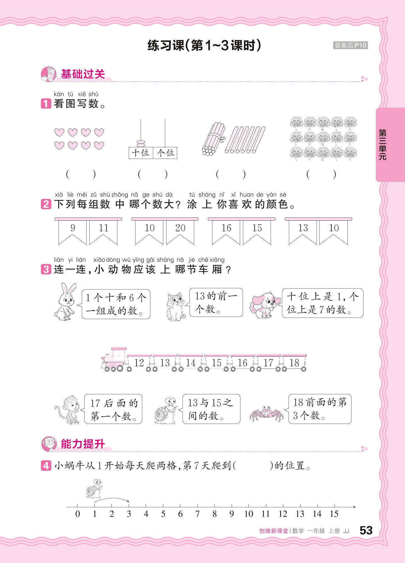 2024秋上册一年级数学冀教版 第三单元 认识11~20——数的认识练习课