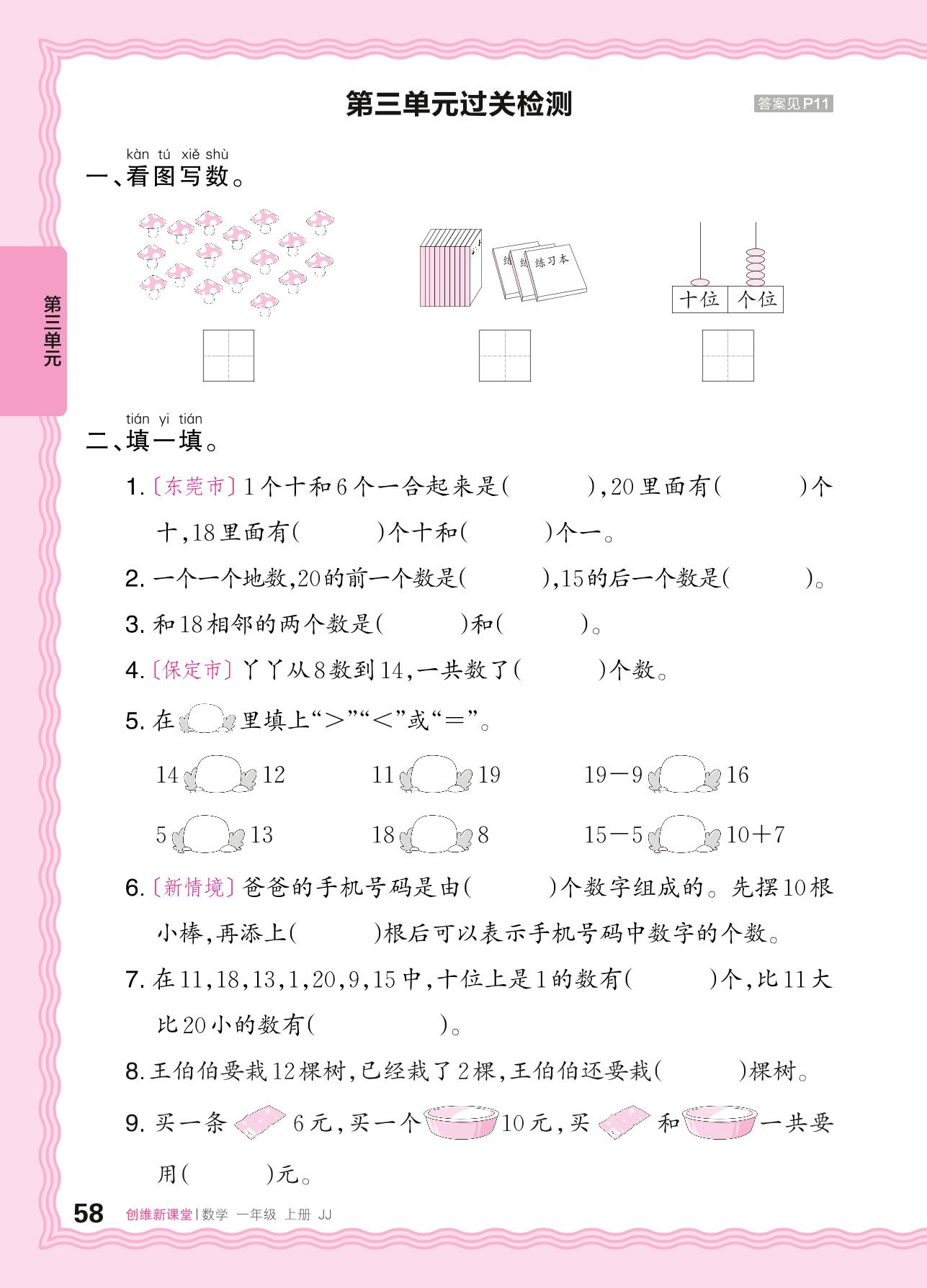 一年级数学冀教版(2024)上册单元卷