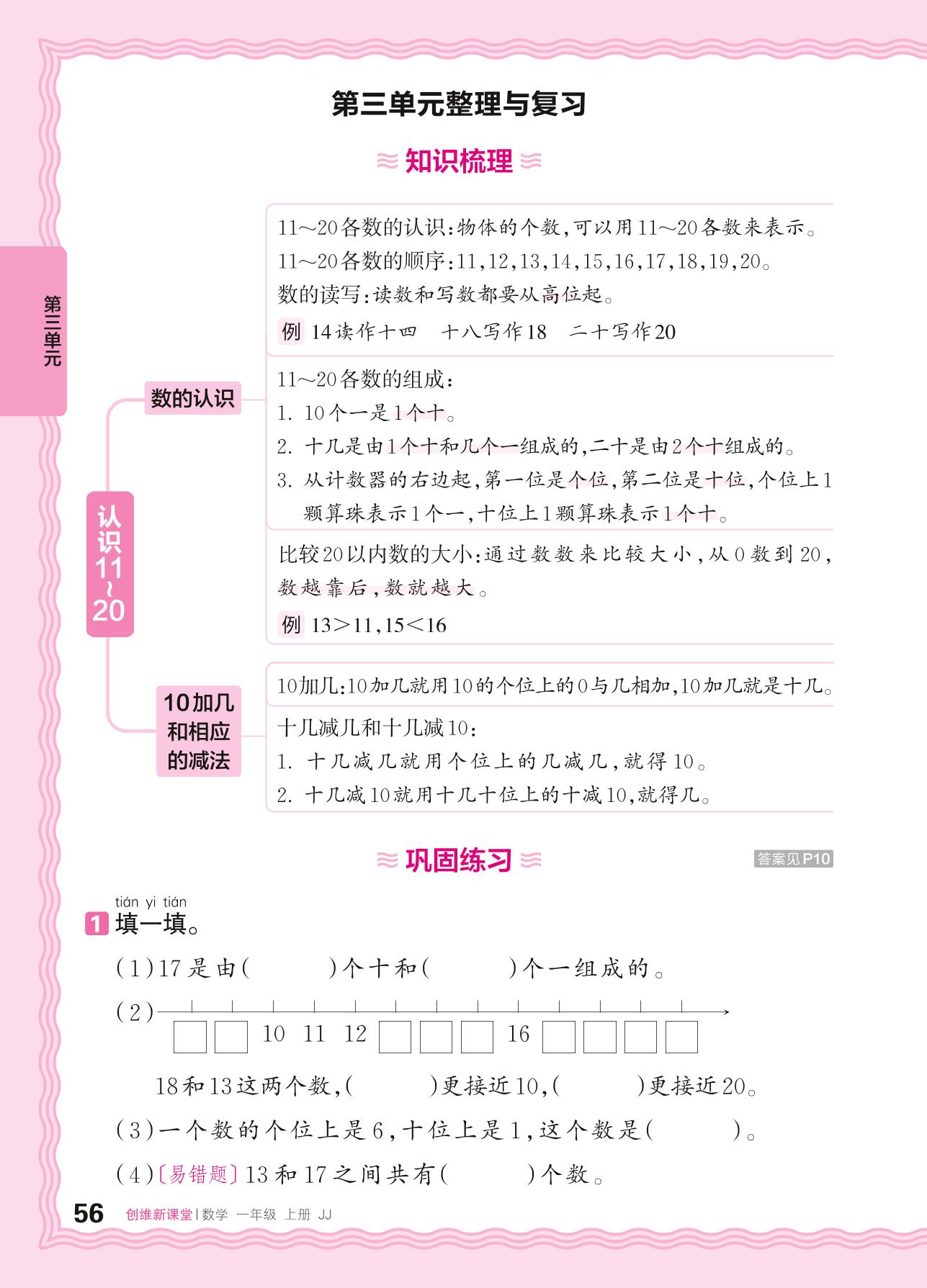 2024秋上册一年级数学冀教版 第三单元整理与复习